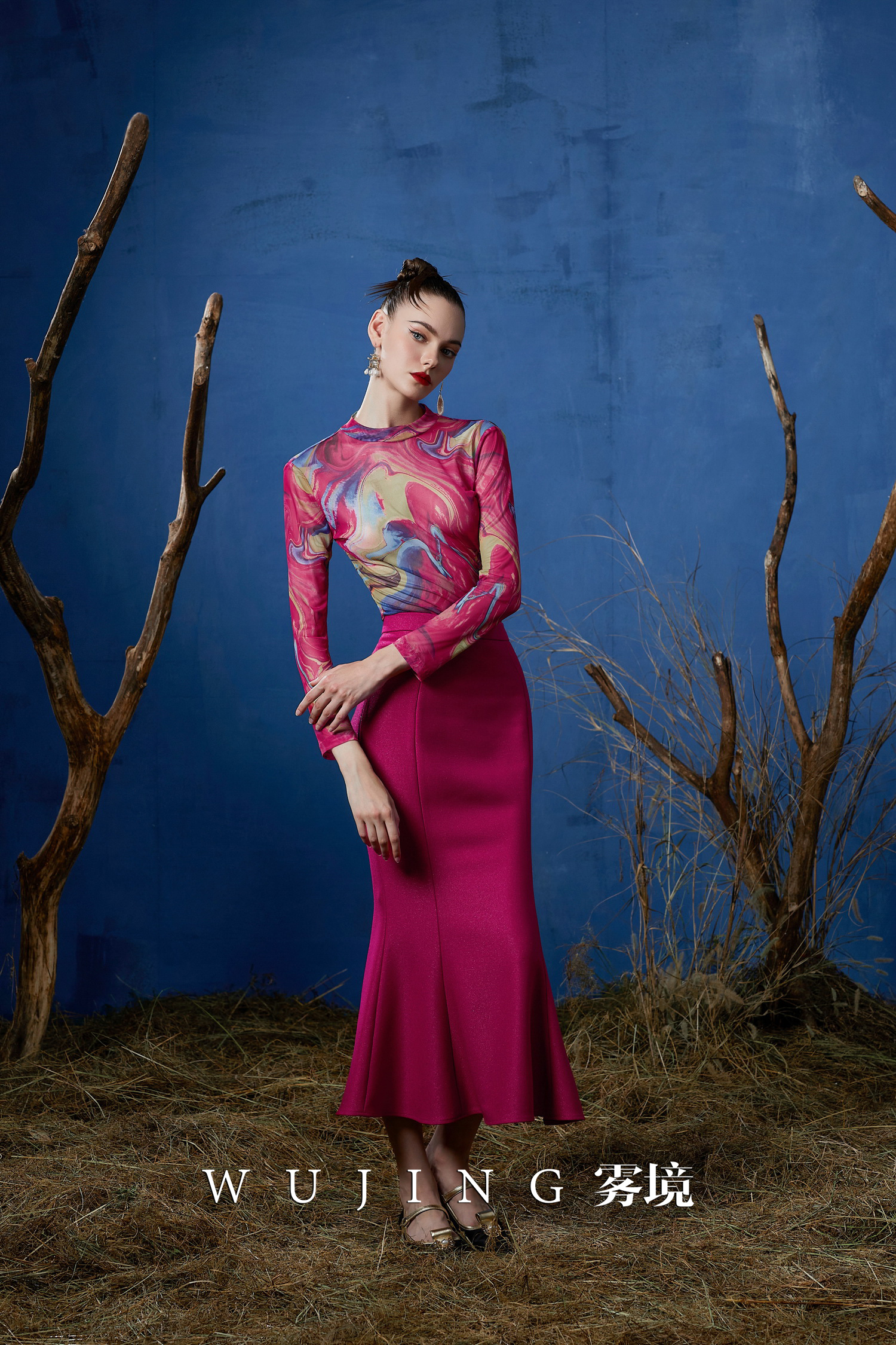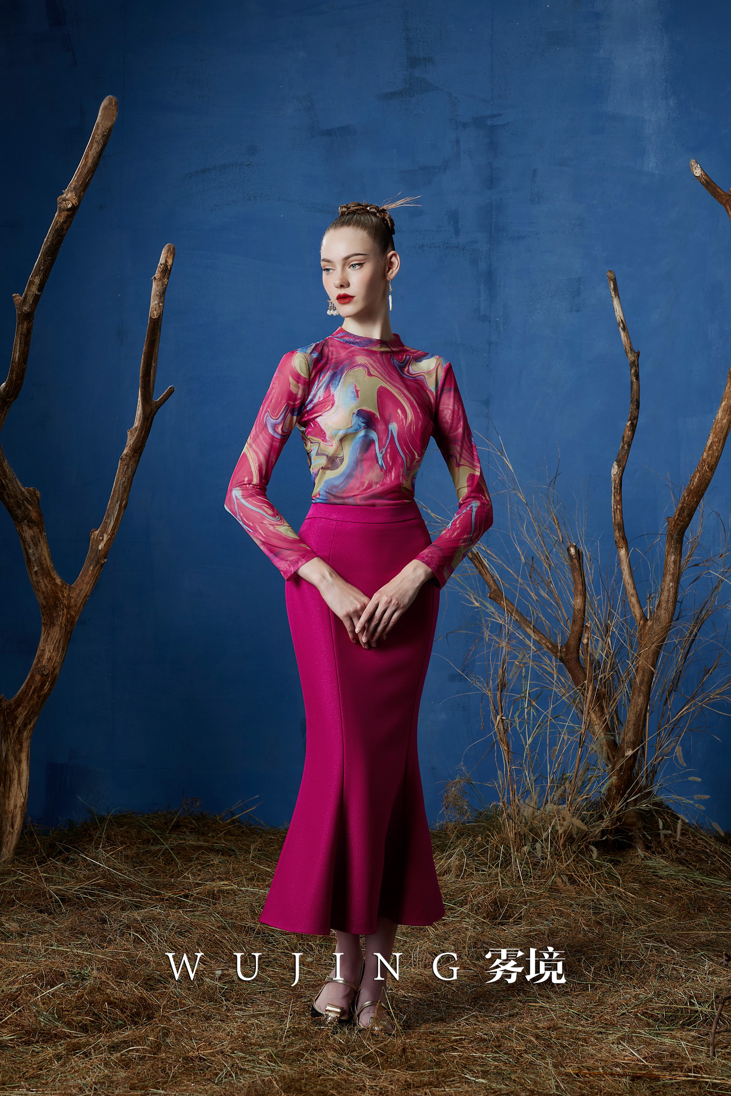 3203006 瑰意成绮 定制氨纶美国网打底衫 雾境