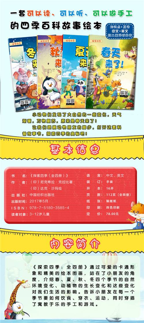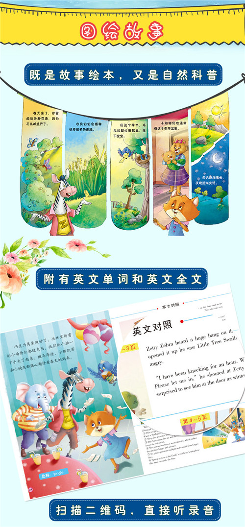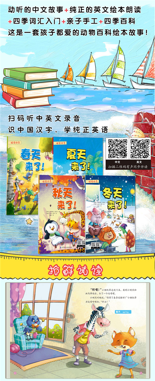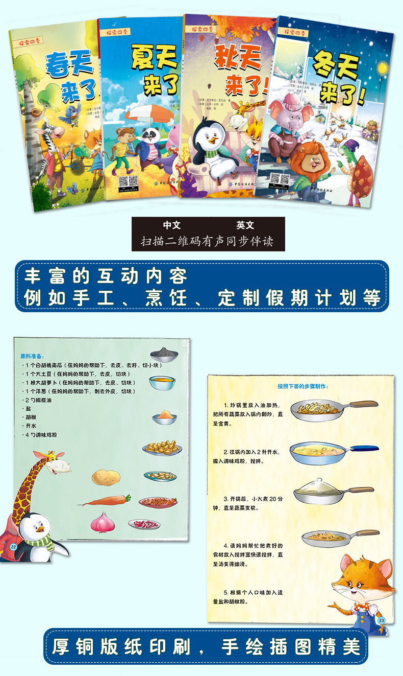 探索四季(全4册)宝宝故事书0-3-6周岁中英文双语绘本睡前故事书 做自己幼儿园早教启蒙读物好习惯养成绘本4-6-7岁