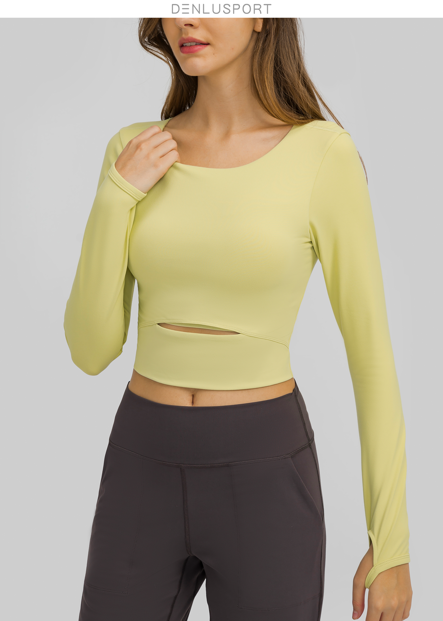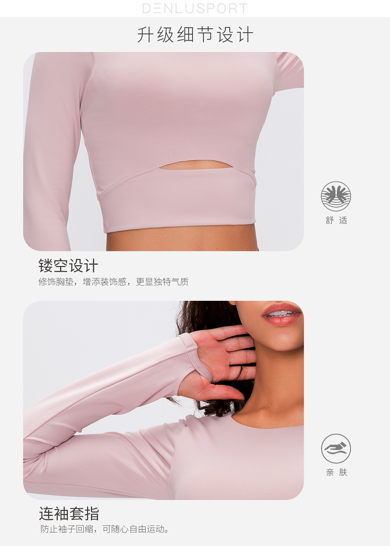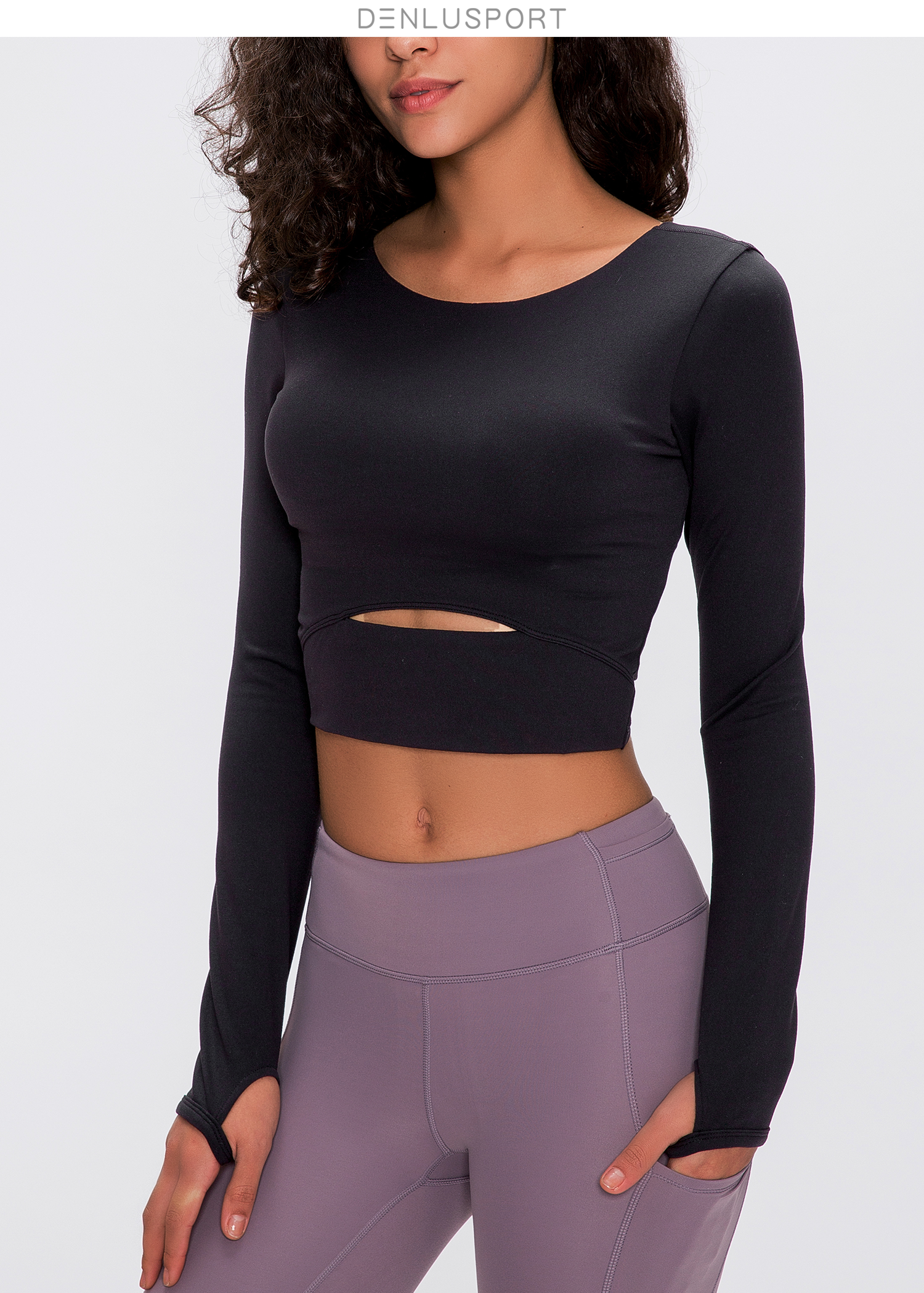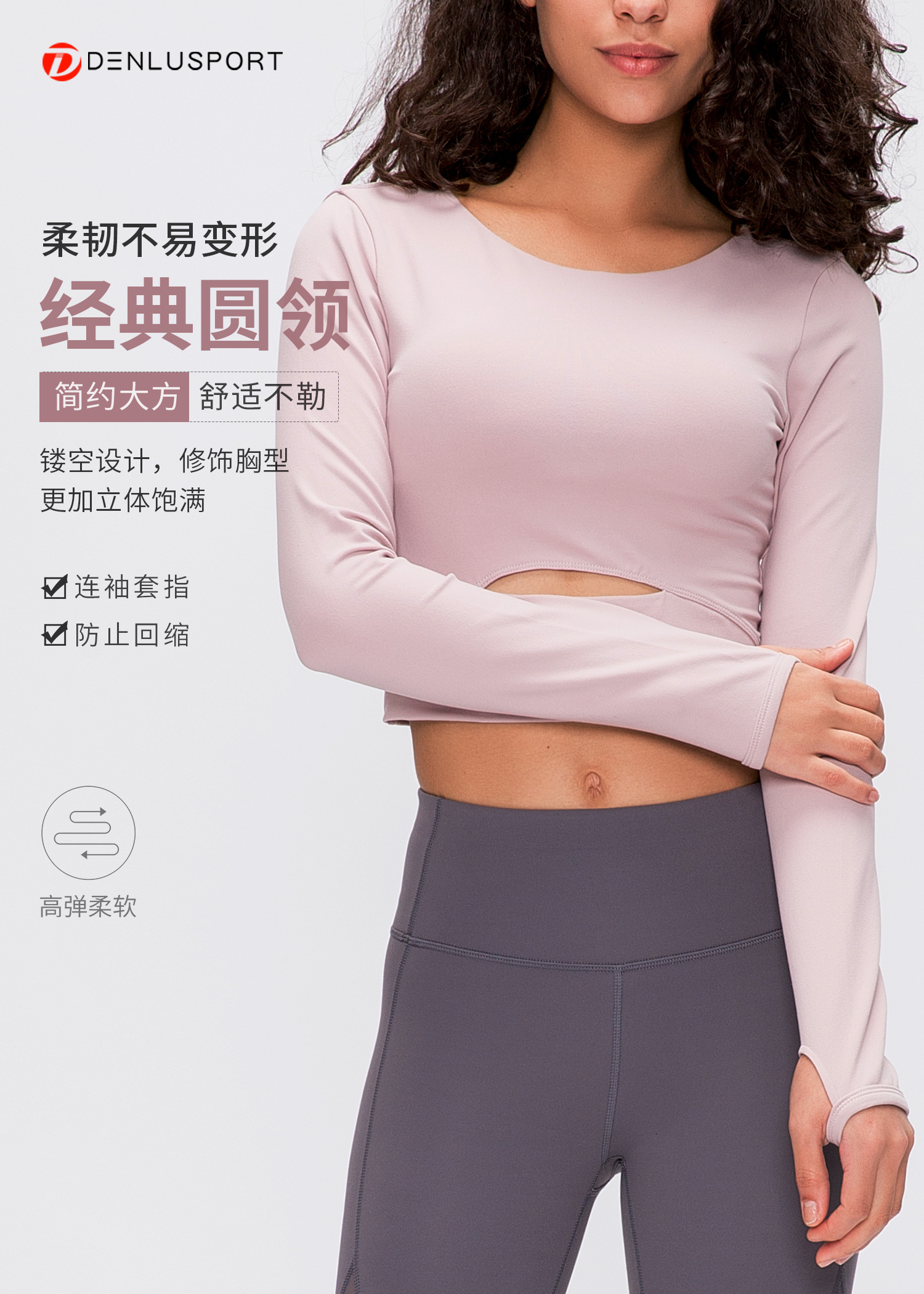 简约大方运动长袖 DY66127# 经典圆领四面回弹 时尚短款镂空设计