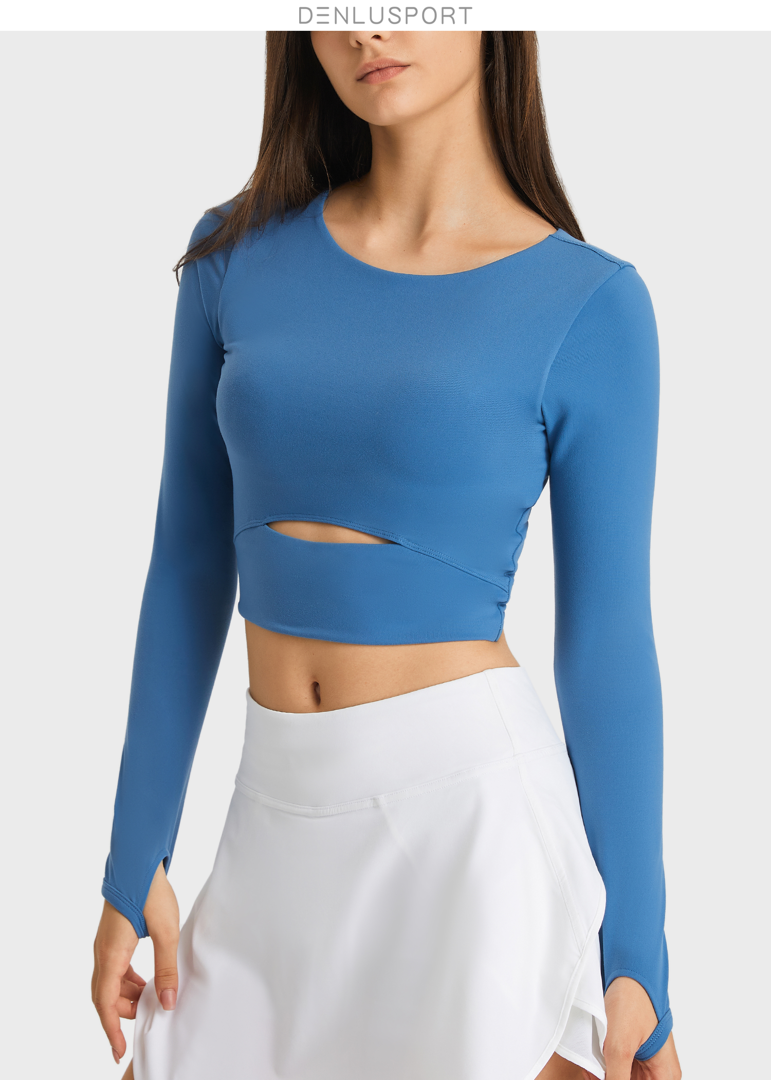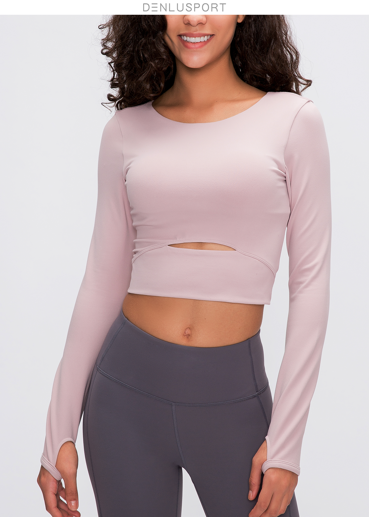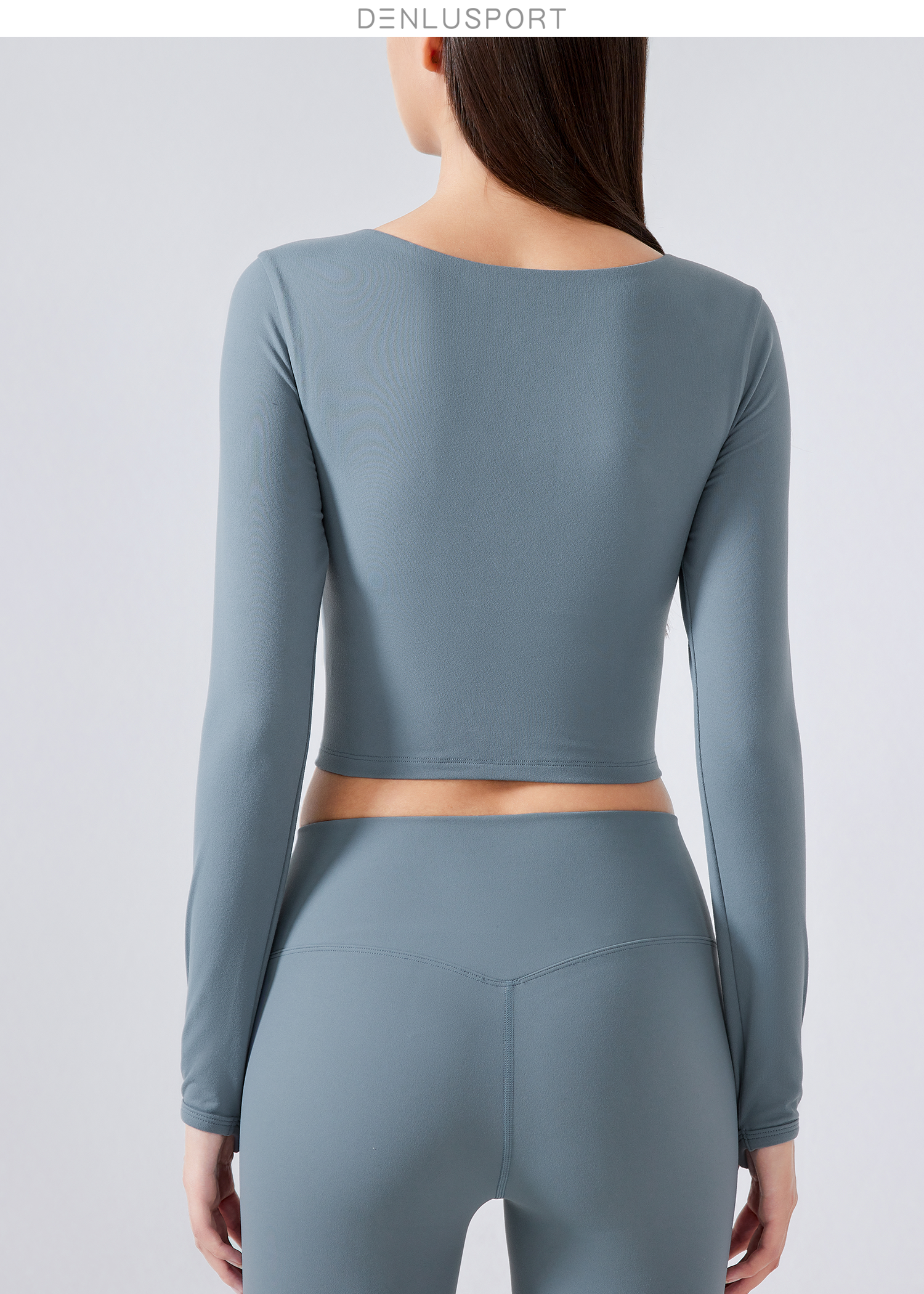 简约大方运动长袖 DY66127# 经典圆领四面回弹 时尚短款镂空设计