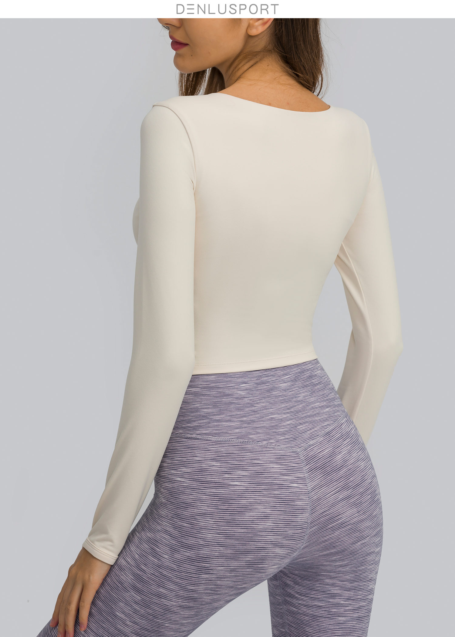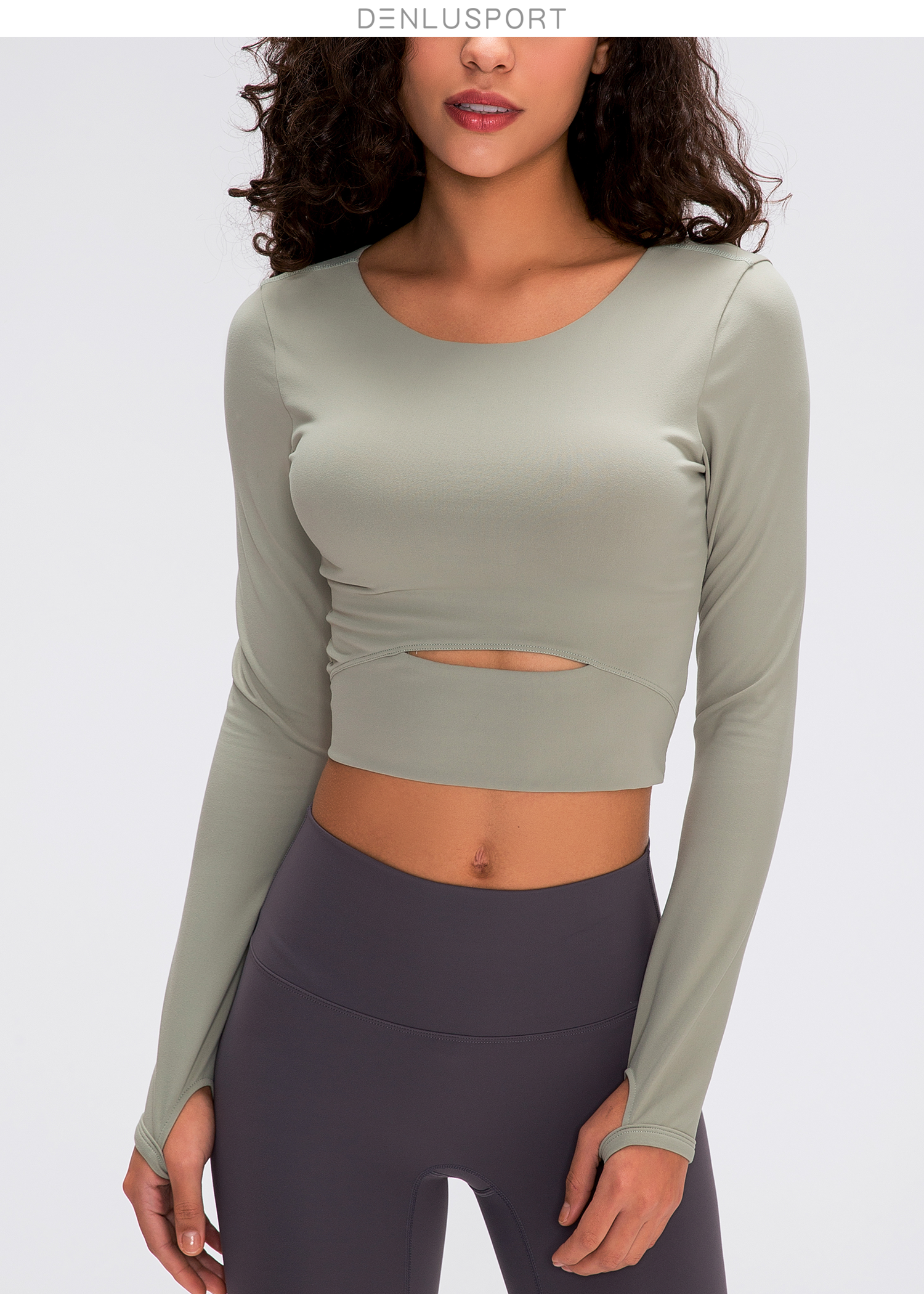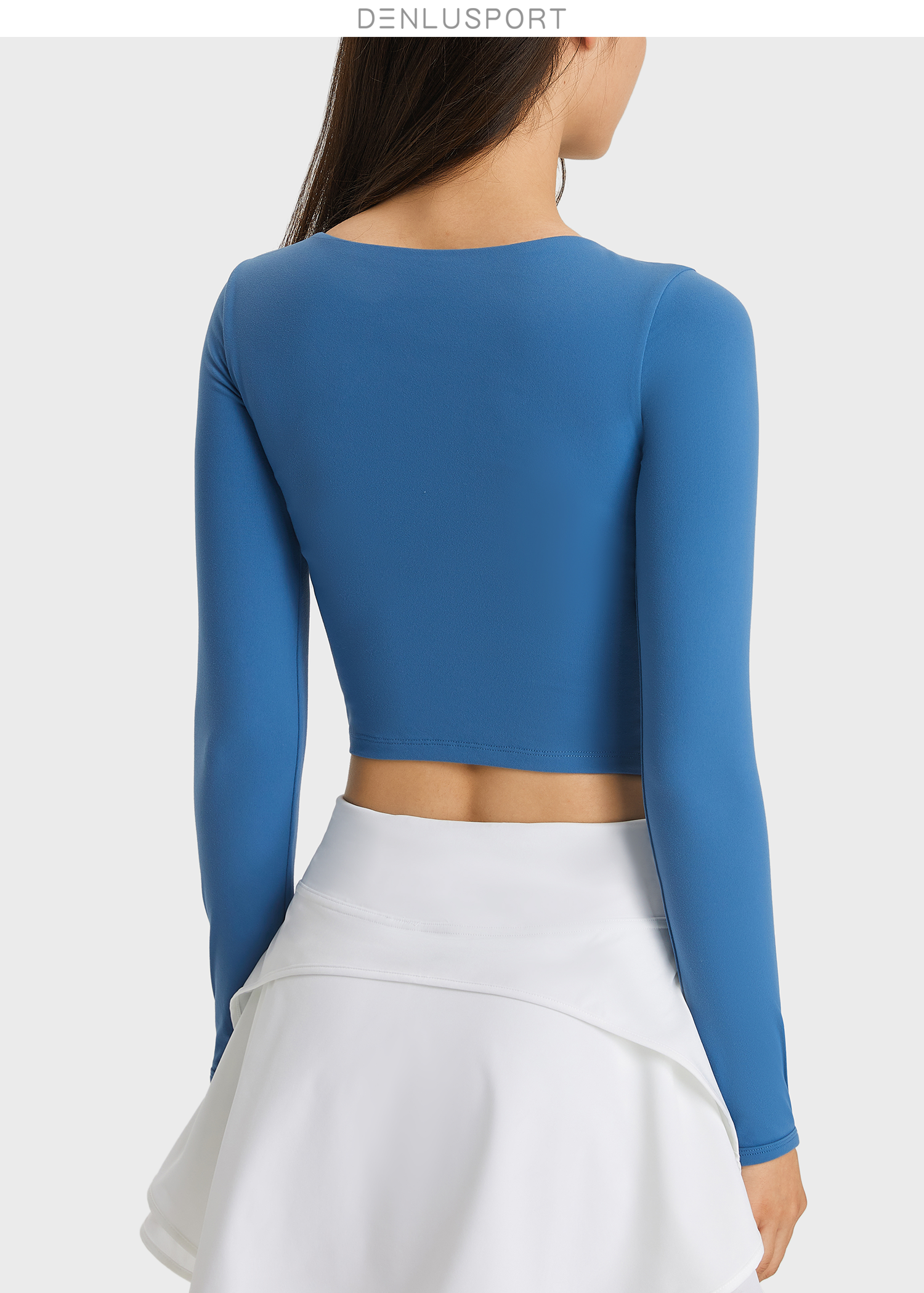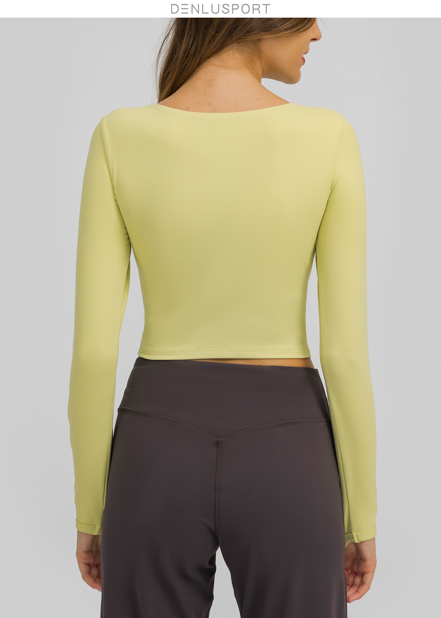 简约大方运动长袖 DY66127# 经典圆领四面回弹 时尚短款镂空设计