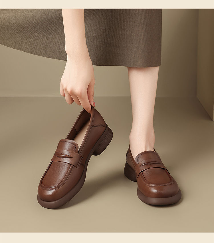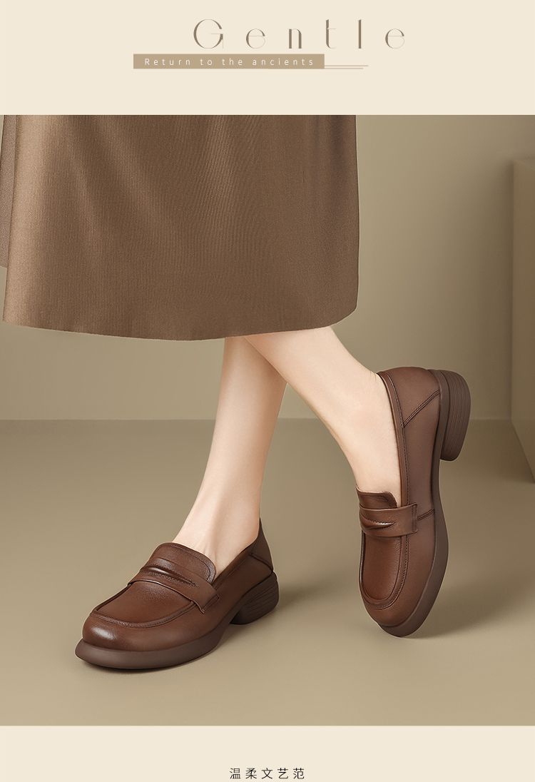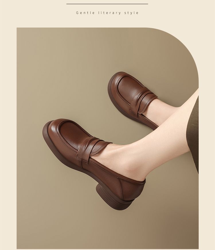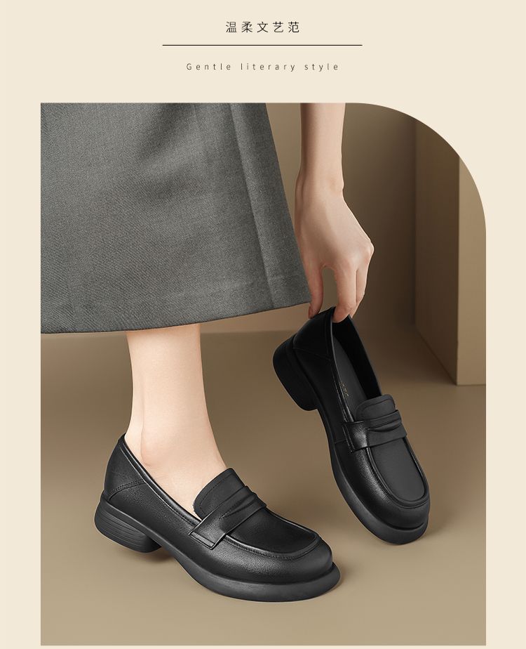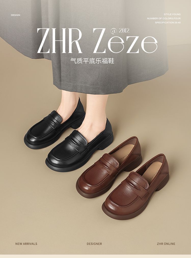 ZHR则则头层牛皮单鞋女2024爆款英伦风真皮乐福鞋轻便百搭ins女鞋