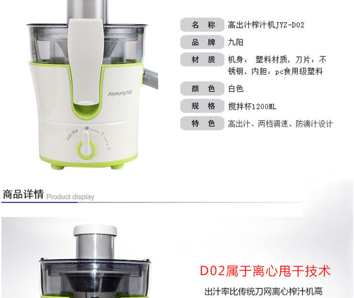南5 Joyoung/九阳榨汁机JYZ-D02 家用多功能榨汁机 高出汁榨汁机