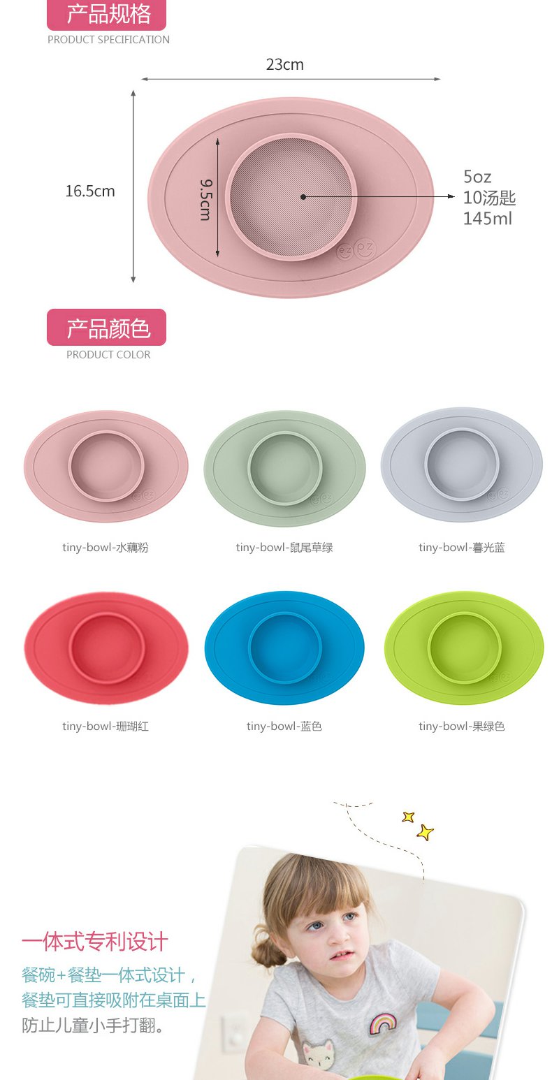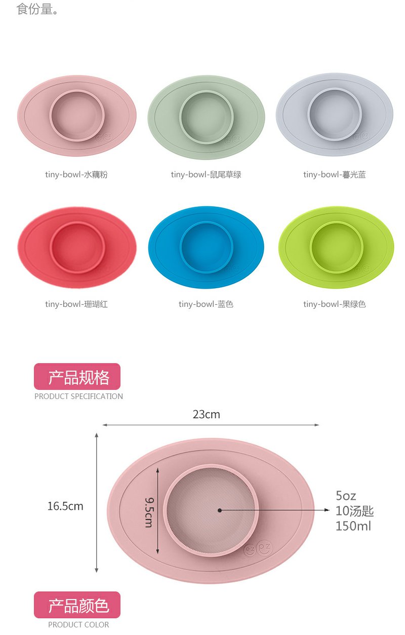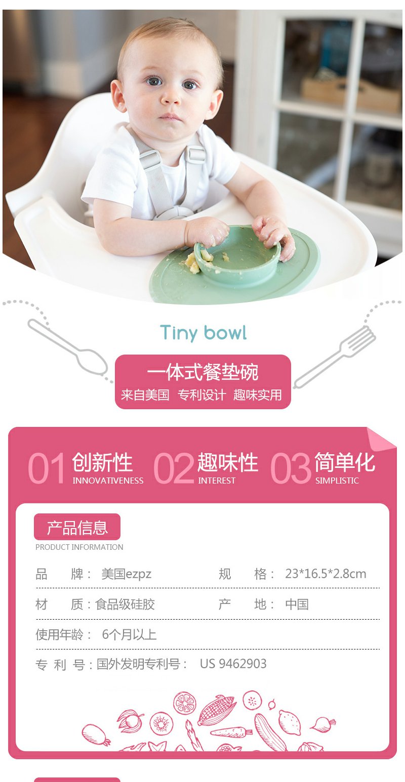 ezpz儿童餐盘吸盘碗宝宝餐具tiny 一体式小小碗硅胶抗摔辅食碗