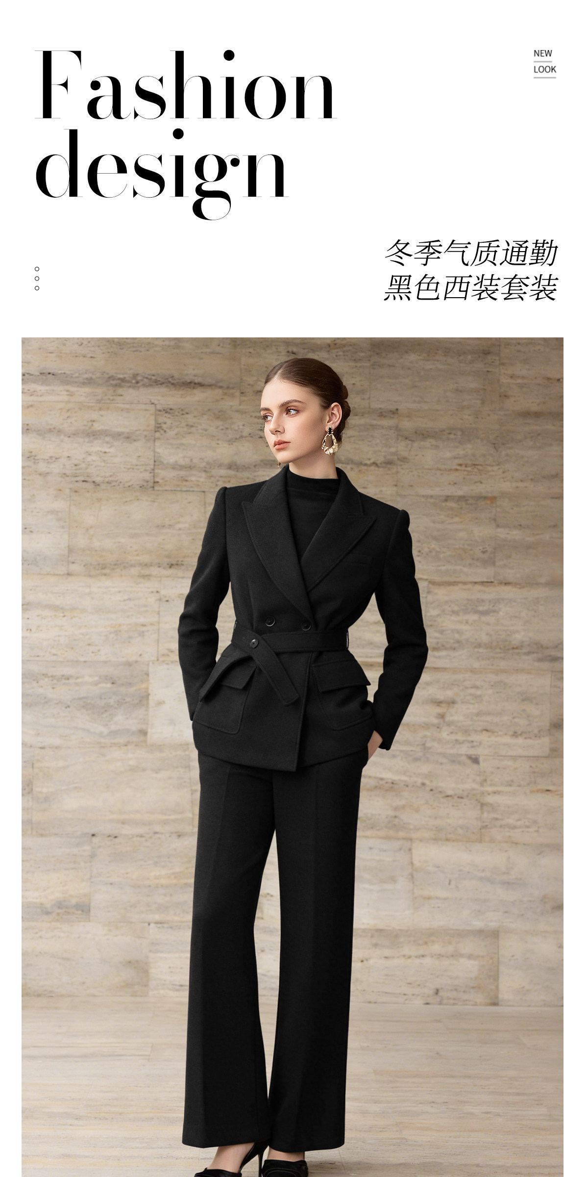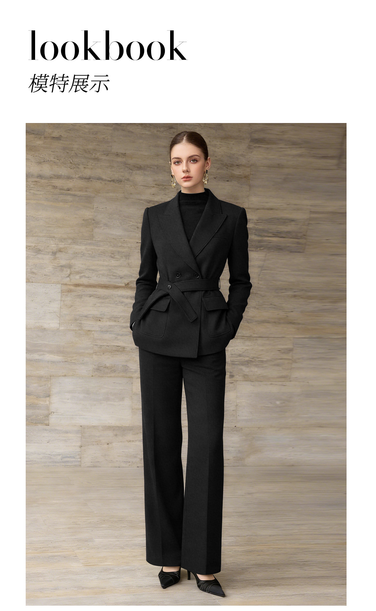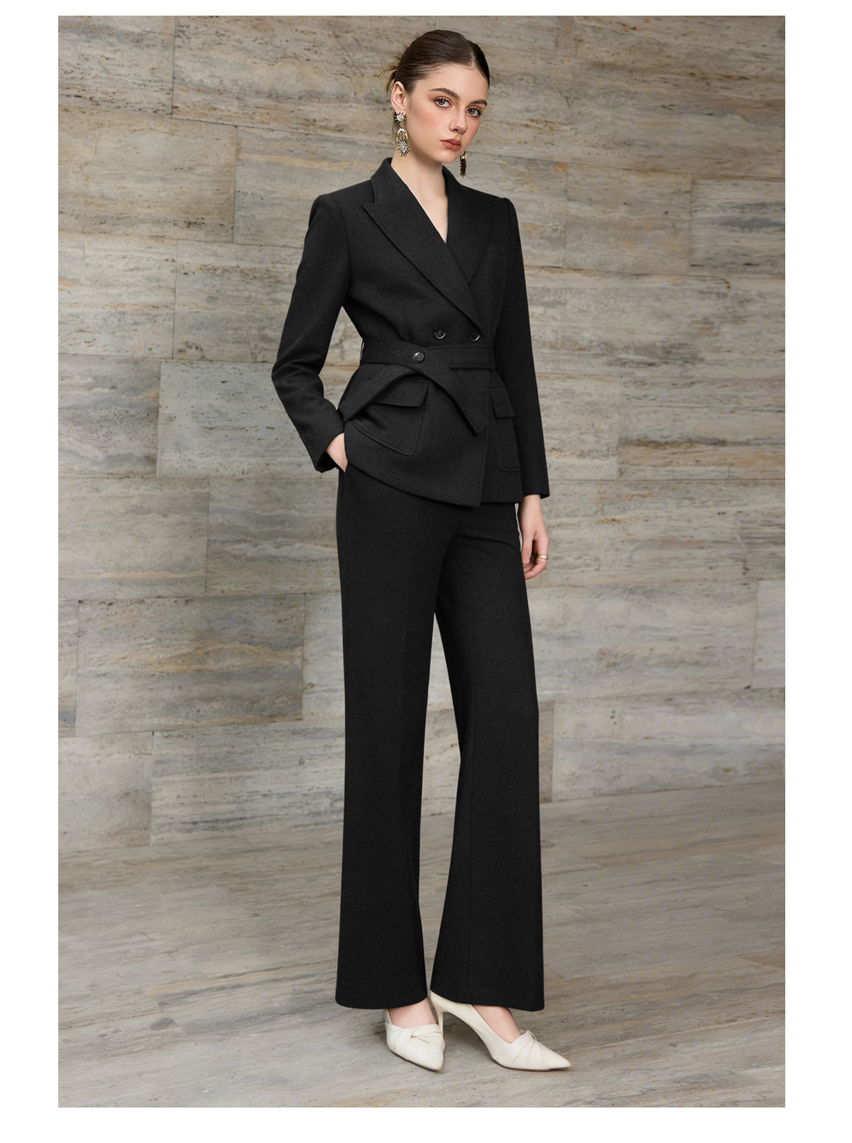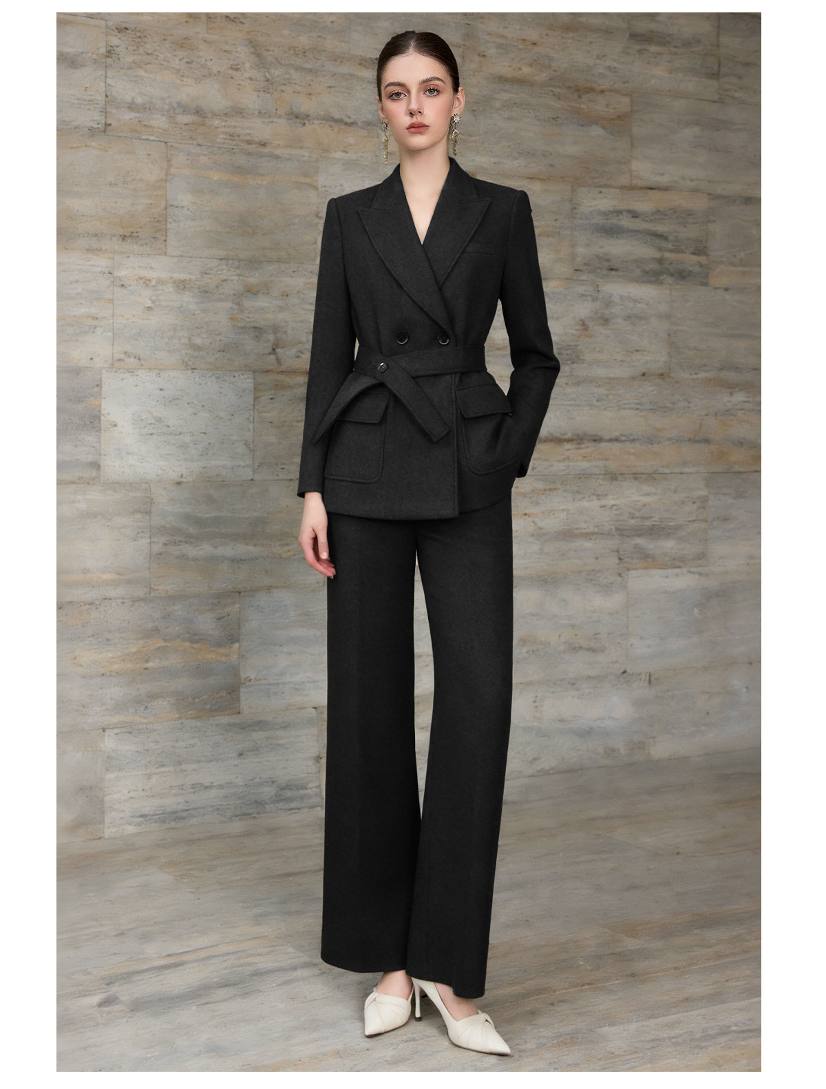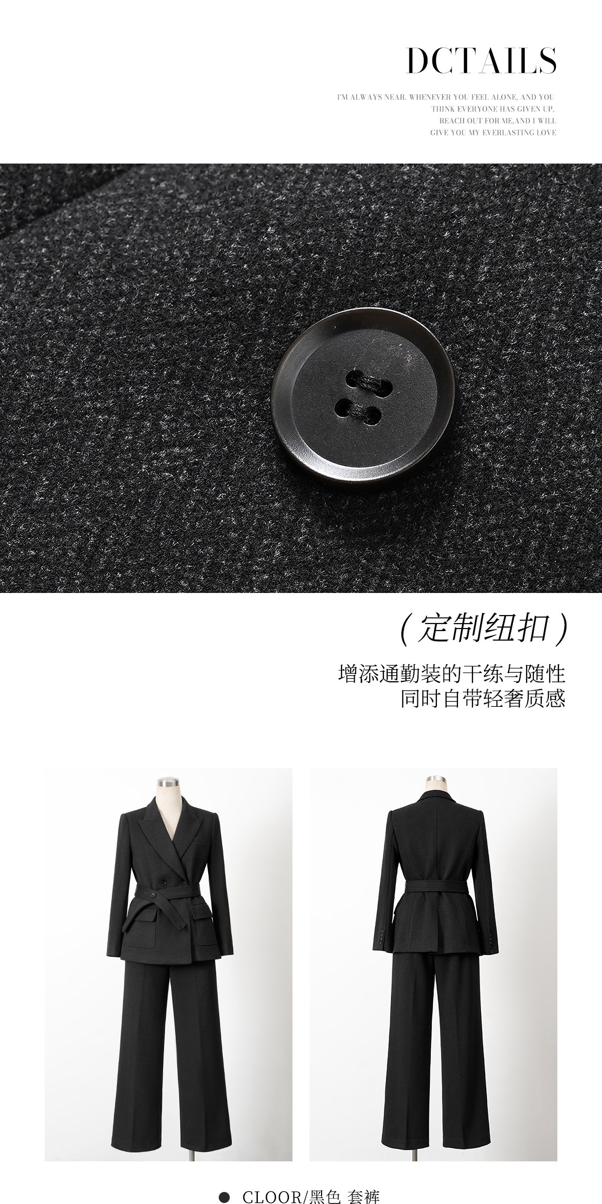 IWY/高级感黑色羊毛西装套装收腰职业装通勤气质商务正装两件套WCP376