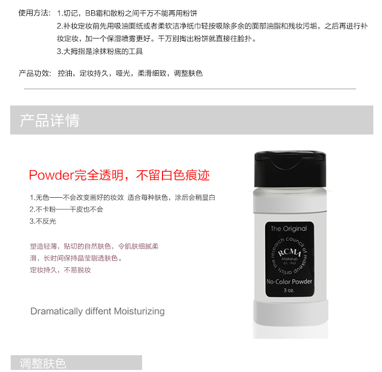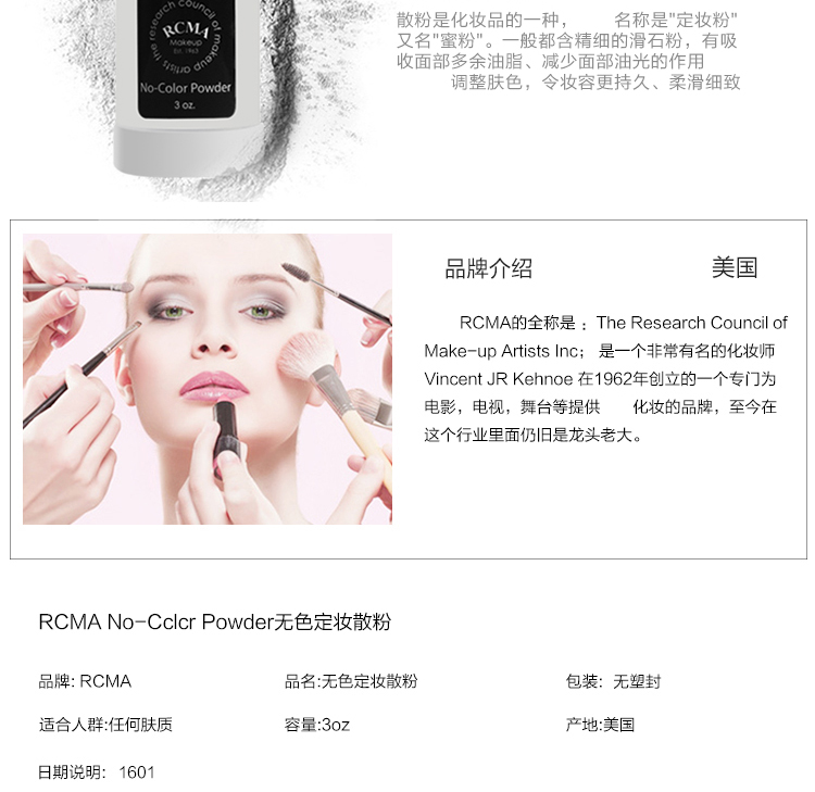 美国RCMA NO COLOR POWDER 无色透明定妆粉胡椒粉散粉蜜粉控油
