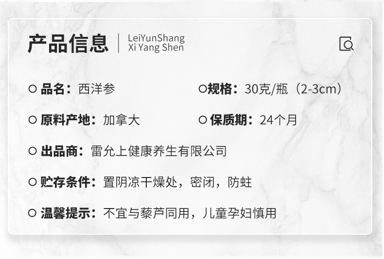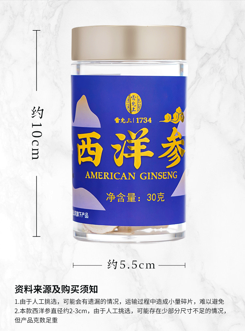 加拿大进口西洋参30g/罐 2-3cm大片参 A-4794