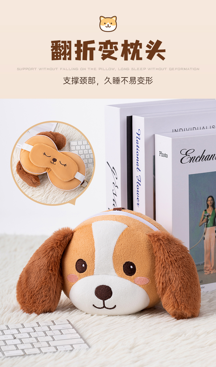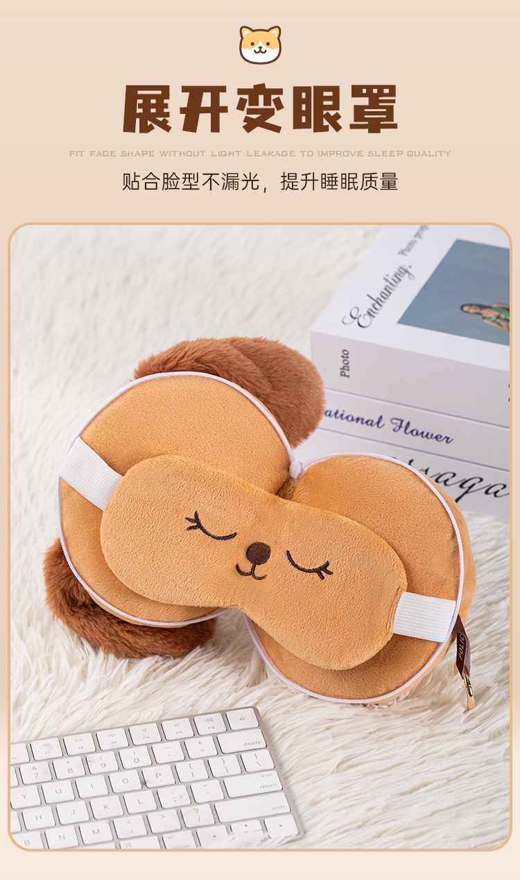 【实付满199送钥匙扣】【史宾格J犬二合一眼罩】创意午睡护眼罩男女卡通睡眠罩/头枕