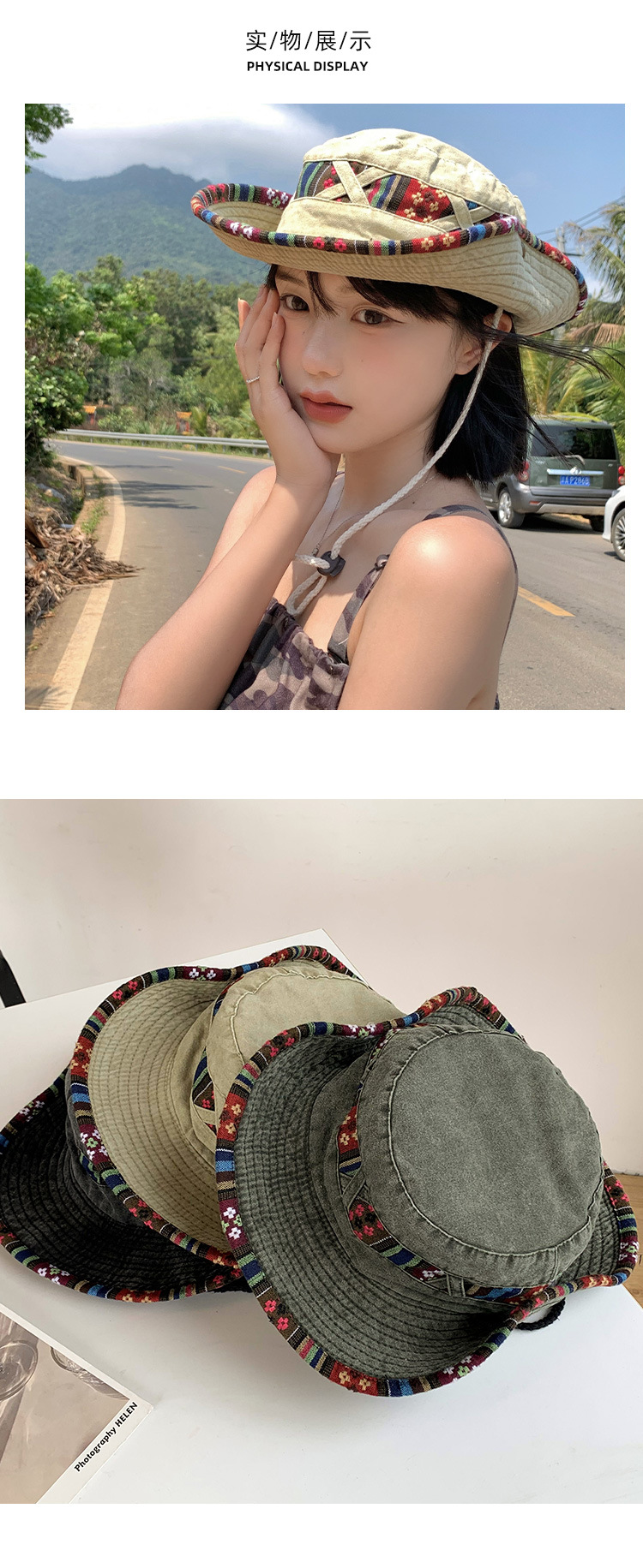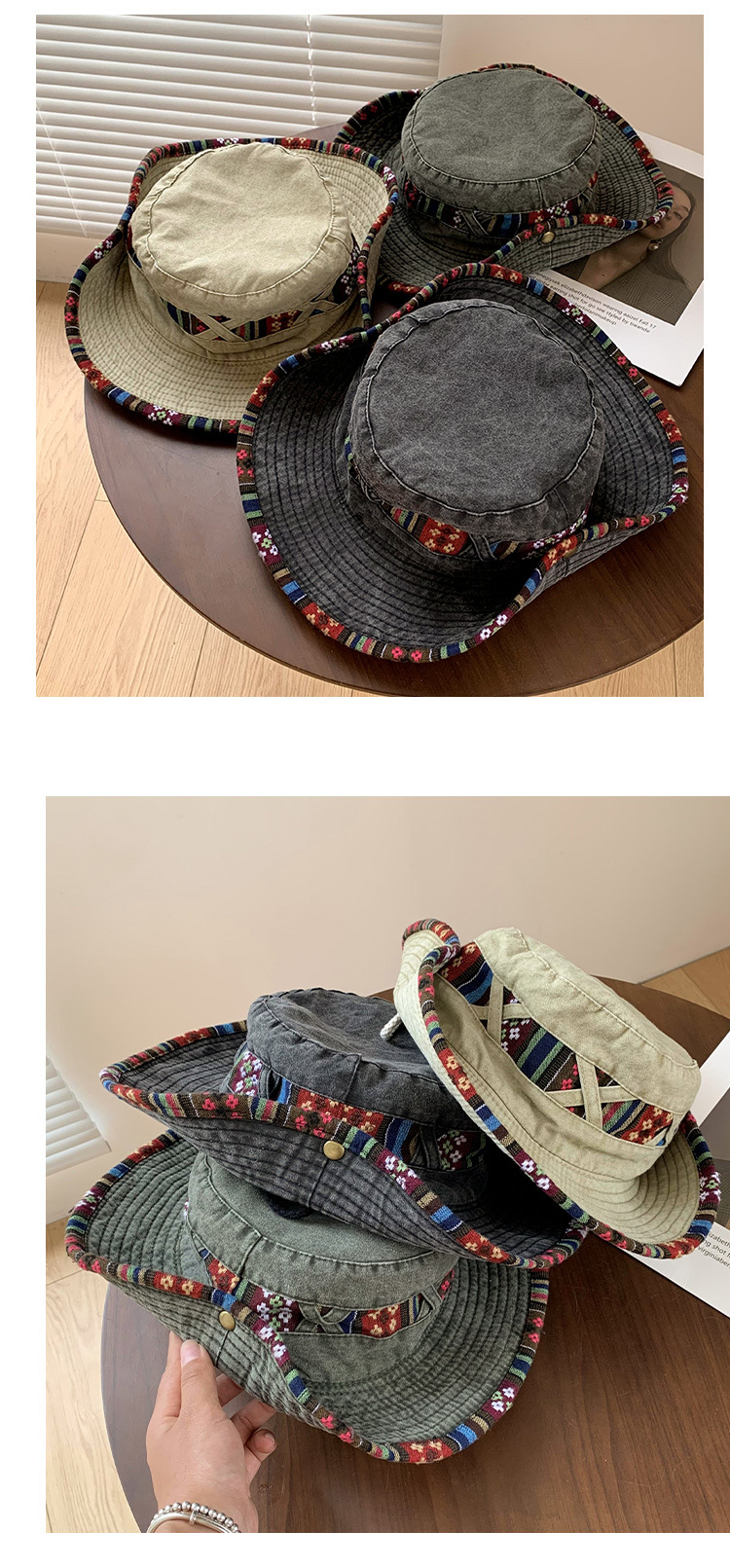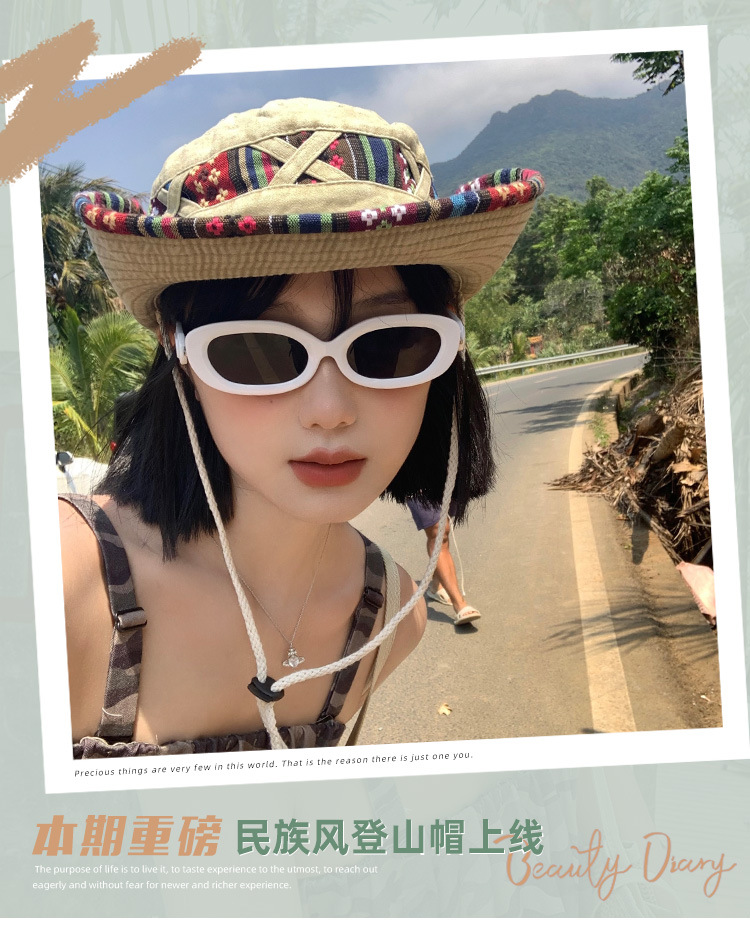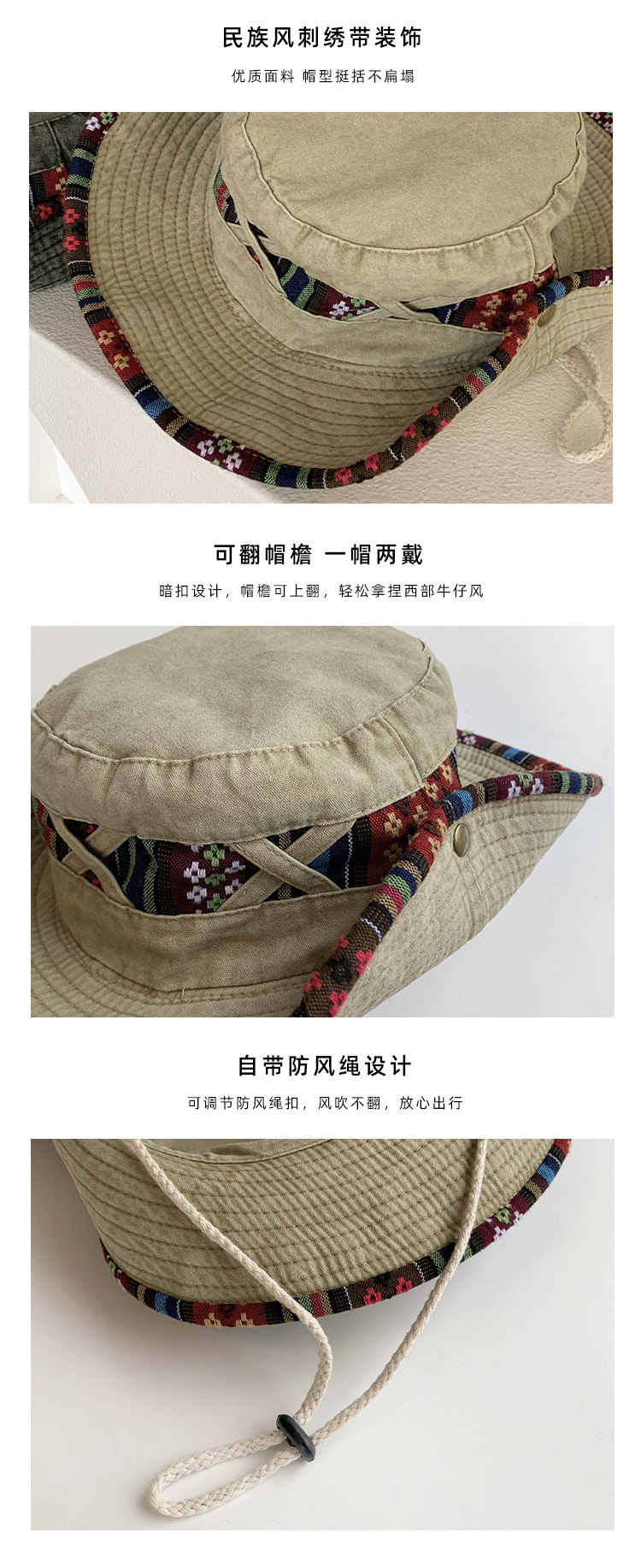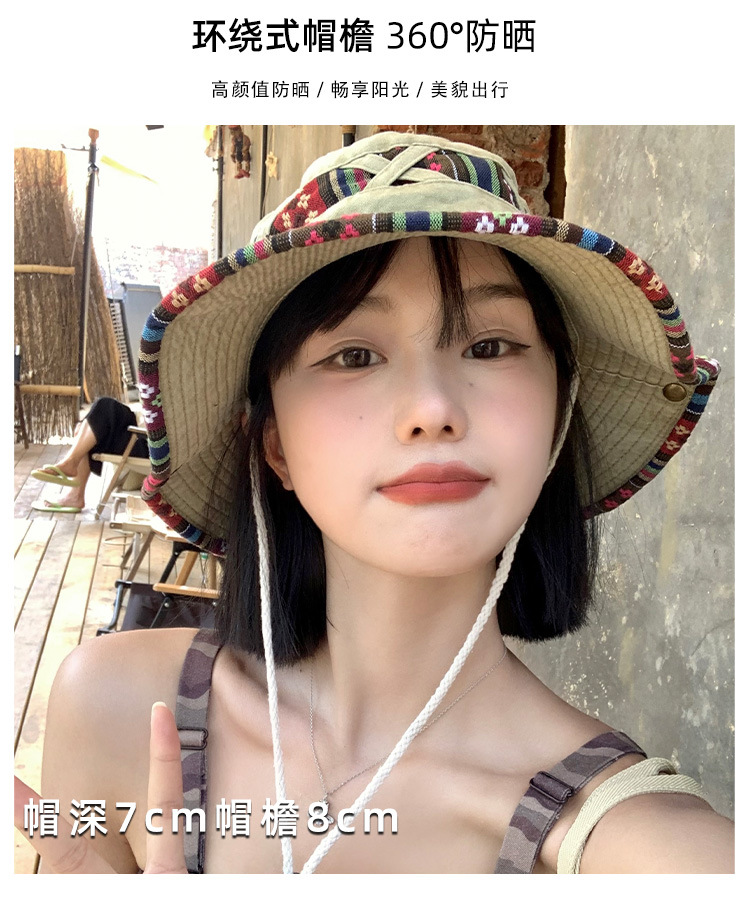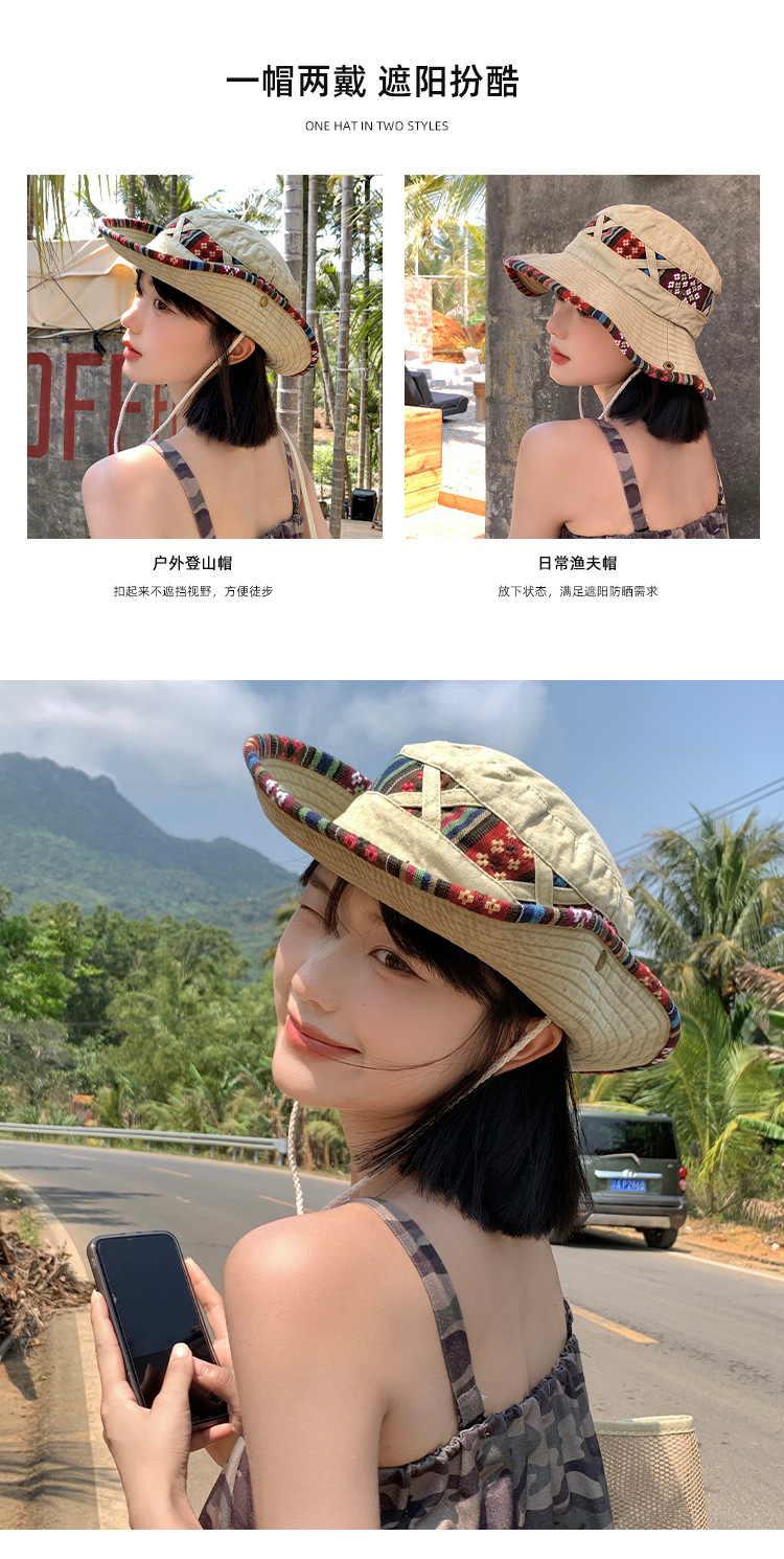 【民族风西部牛仔帽子】一帽两戴·360°防晒 春夏季复古登山帽 户外大帽檐遮阳防晒渔夫帽 民族风刺绣带装饰