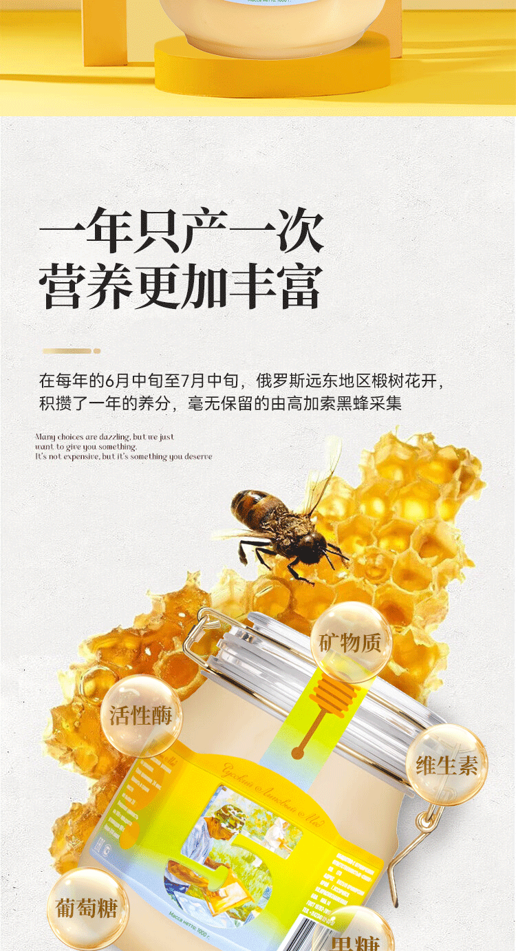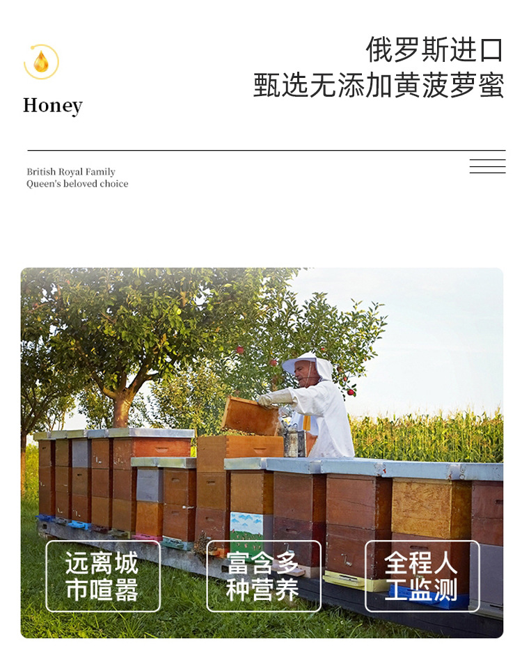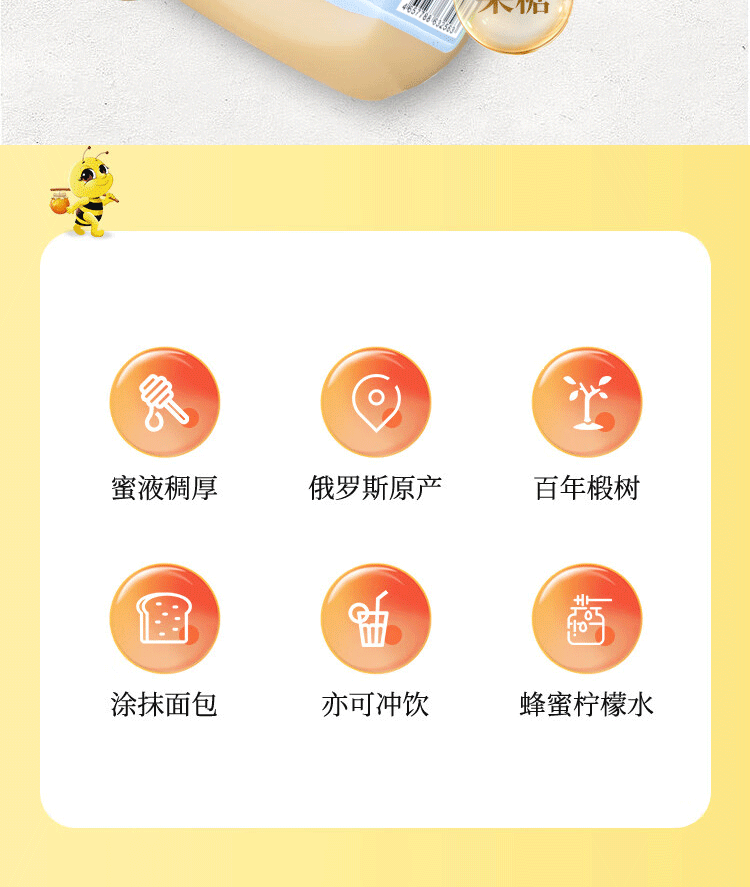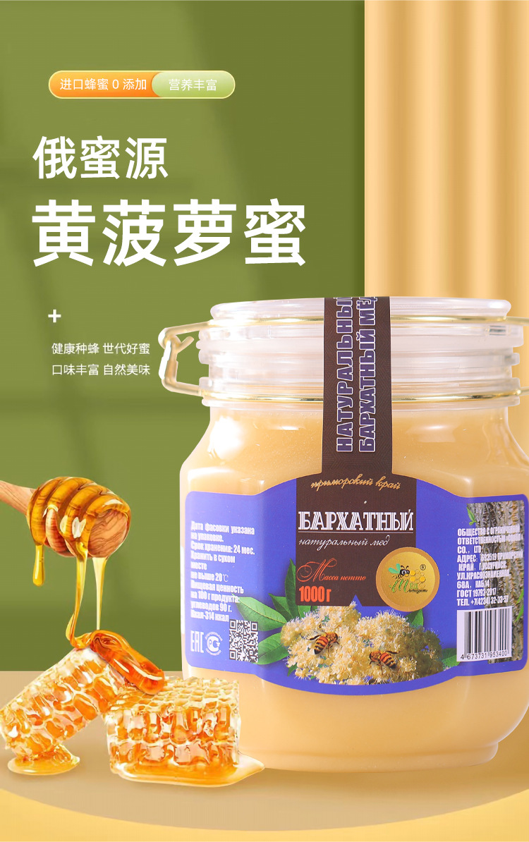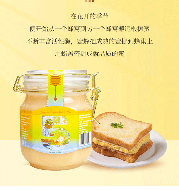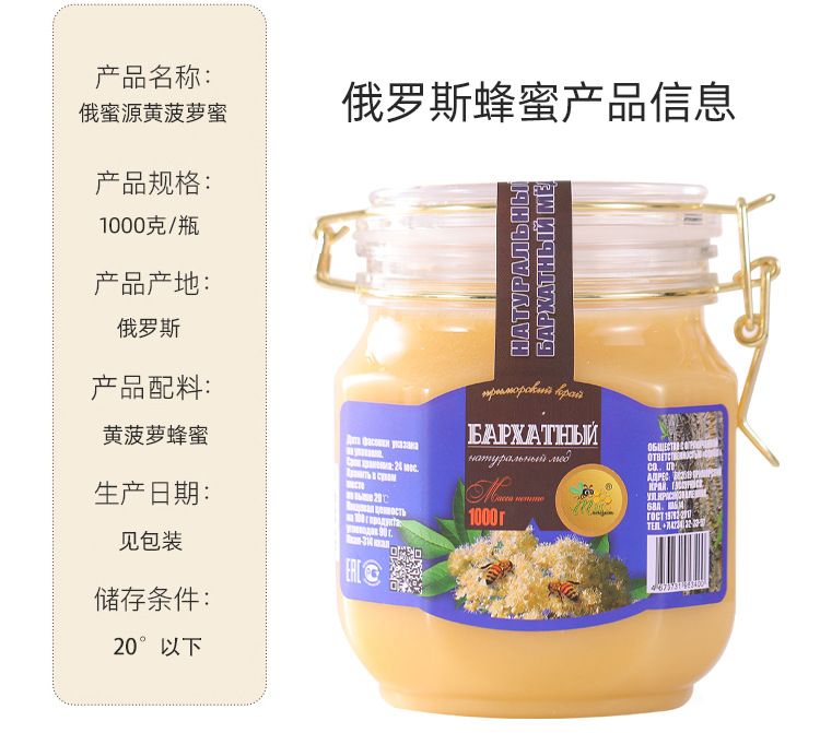 俄罗斯俄蜜源黄菠萝蜂蜜1000g/033724 口味丰富自然美味