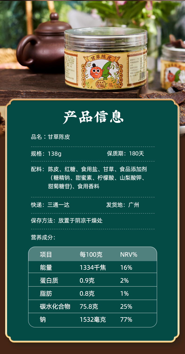 陈皮皮和朋友们甘草陈皮 嚼着吃酸甜 泡水喝清甜 商品缩略图0 陈皮皮和朋友们甘草陈皮 嚼着吃酸甜 泡水喝清甜 商品缩略图1 陈皮皮和朋友们甘草陈皮 嚼着吃酸甜 泡水喝清甜 商品缩略图2 陈皮皮和朋友们甘草陈皮 嚼着吃酸甜 泡水喝清甜 商品缩略图3