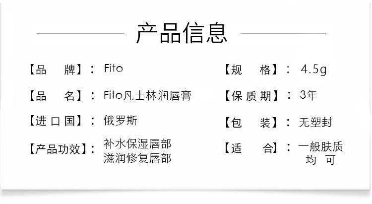 【爆款超低价预售 急单慎拍】俄罗斯Fito本土润唇膏补水滋润防干裂无色果味草莓樱桃香草冰淇淋