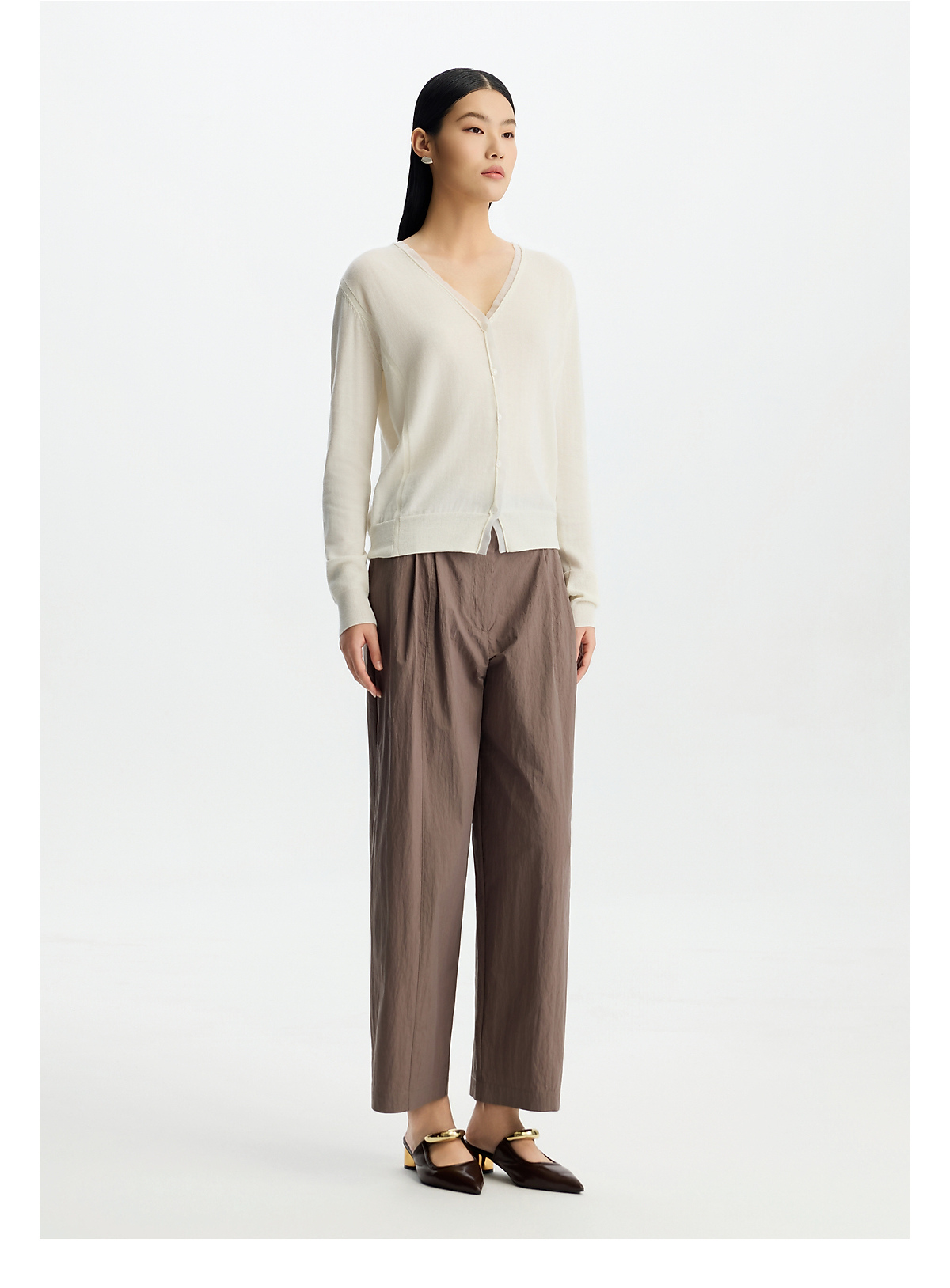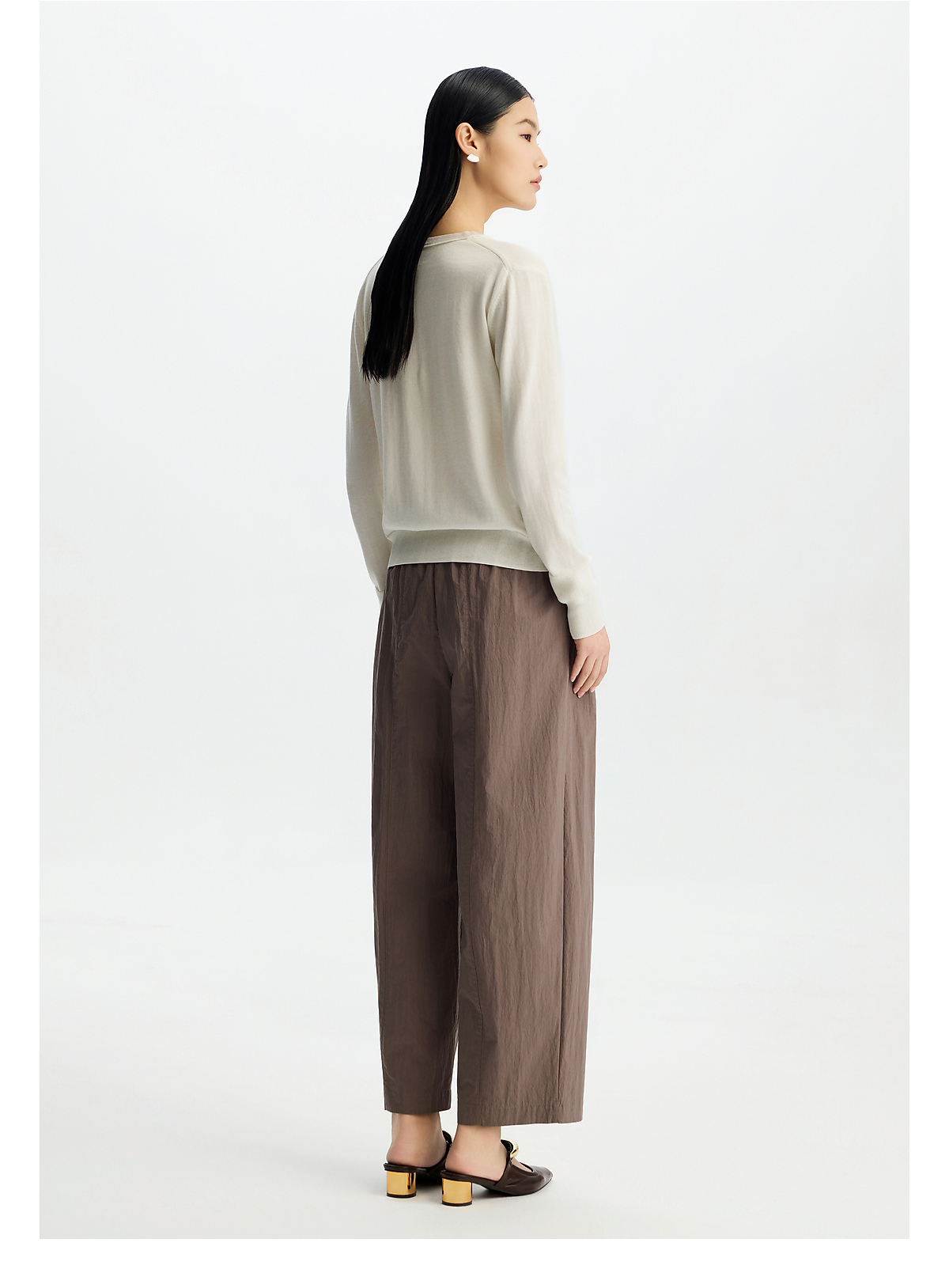 商场同款PURE TOUCH女装26春夏新款高腰直筒休闲裤松紧后腰头长裤