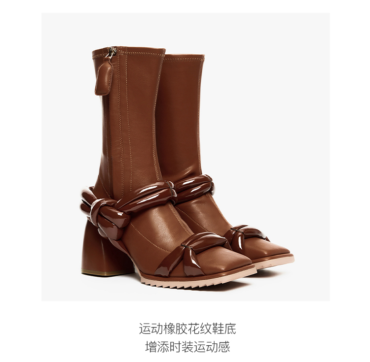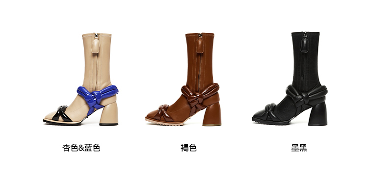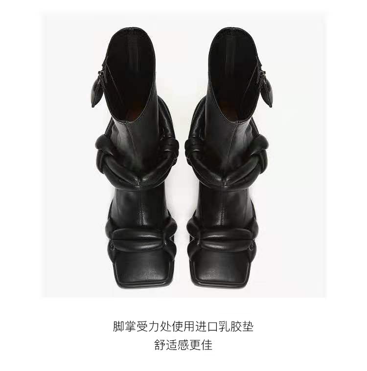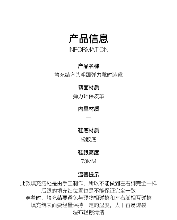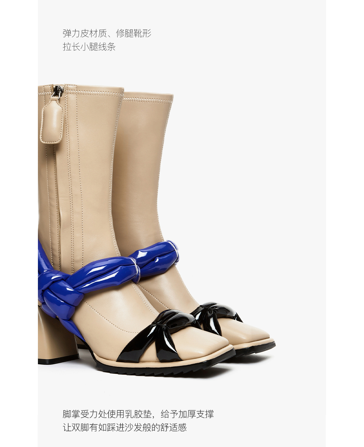 【下架】lost in echo 设计师女鞋填充结方头粗跟弹力靴时装靴
