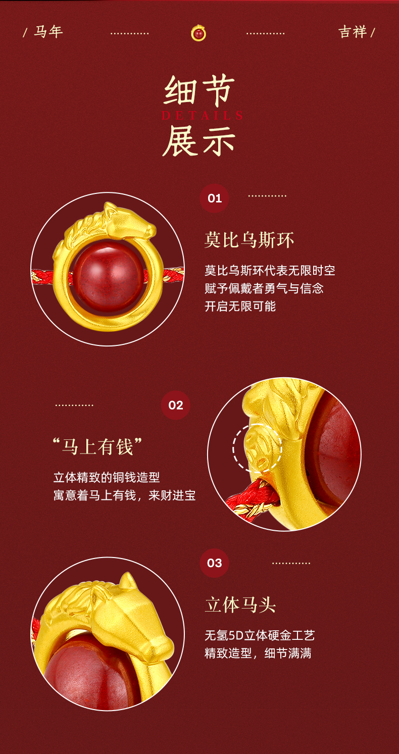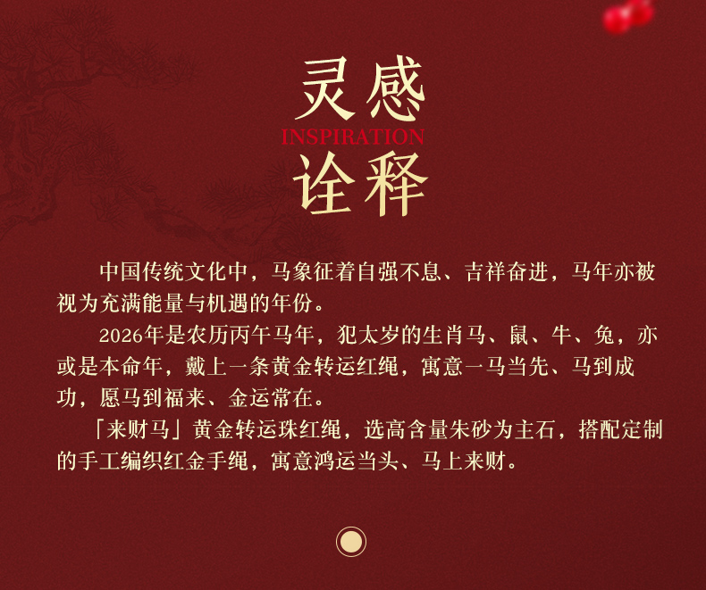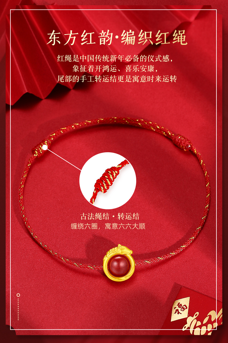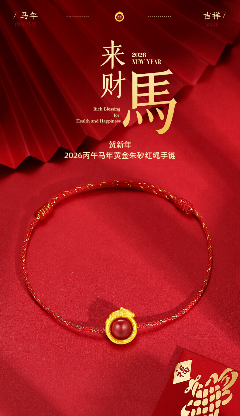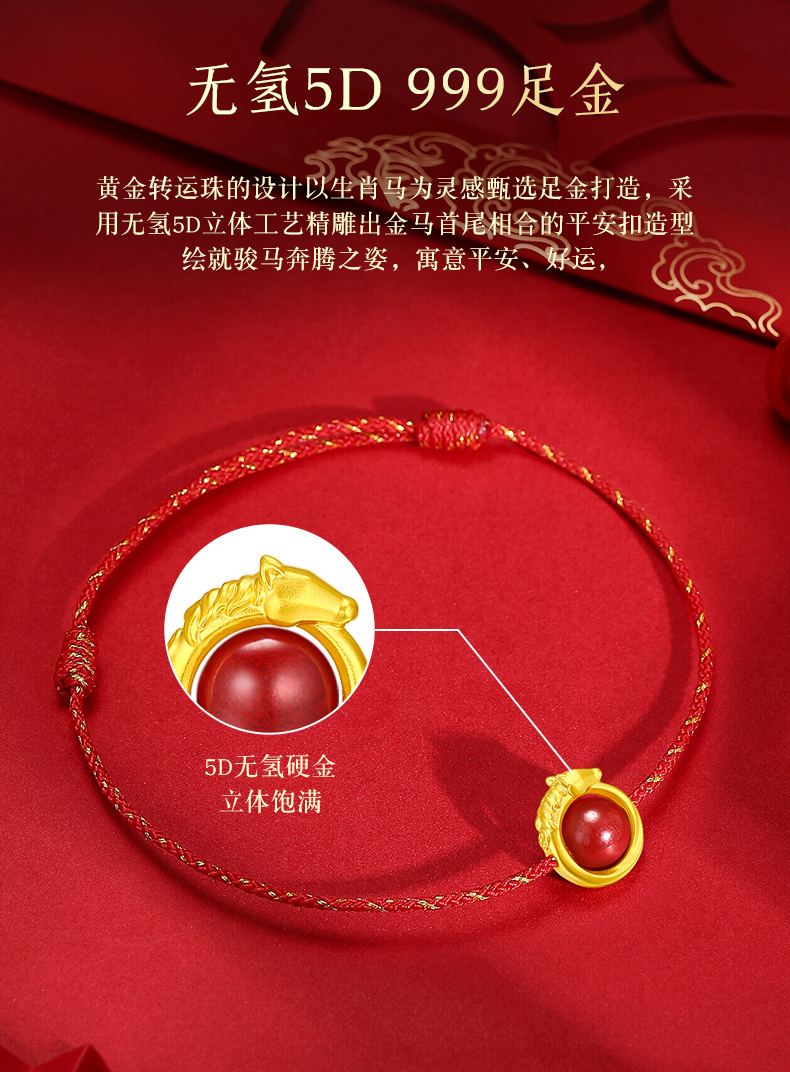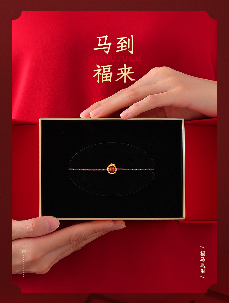 「来财马」足金朱砂手绳 马年必备吉祥款 时尚百搭