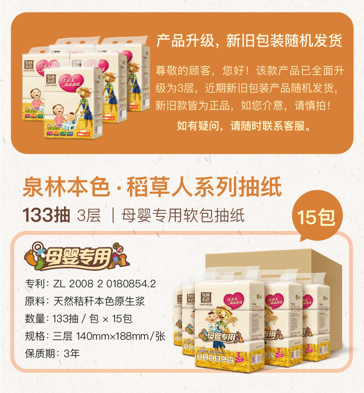 泉林本色抽纸 3层120抽24包卫生洁面柔纸巾