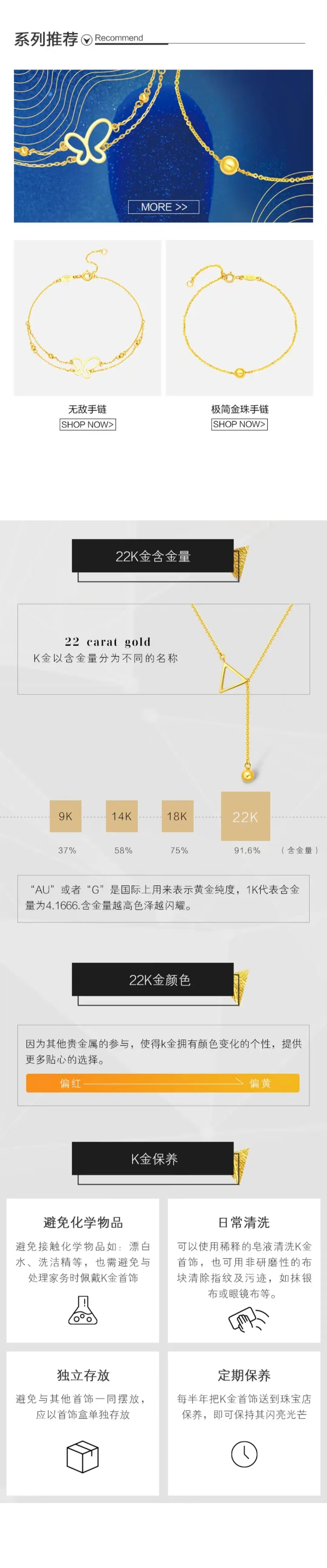 【七夕】周大福 17916系列 夜空中的星 22K金手链 E122824 15cm