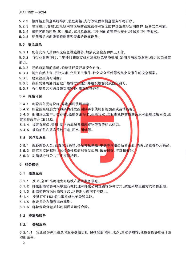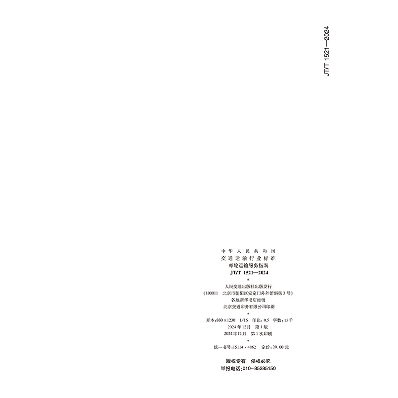 书名:邮轮运输服务指南(JT/T 1521—2024)