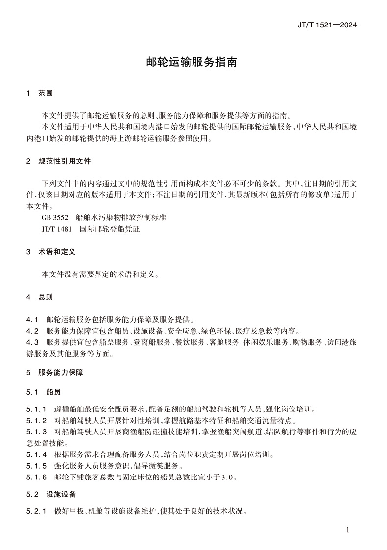 邮轮运输服务指南(JT/T 1521—2024)