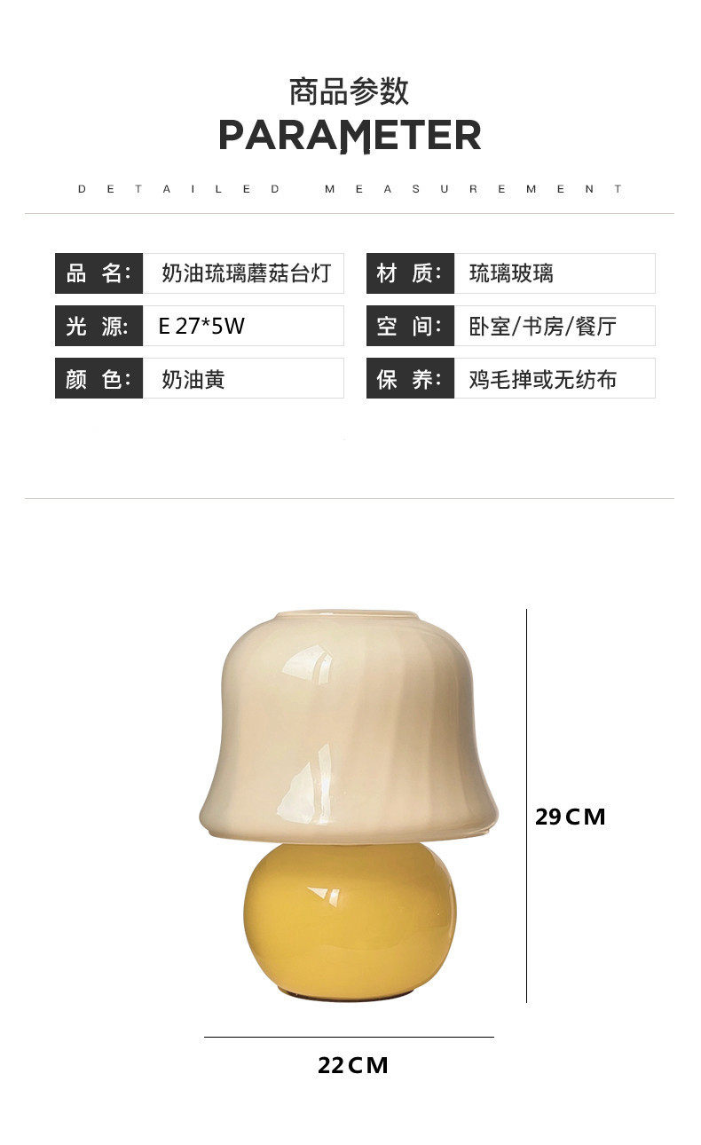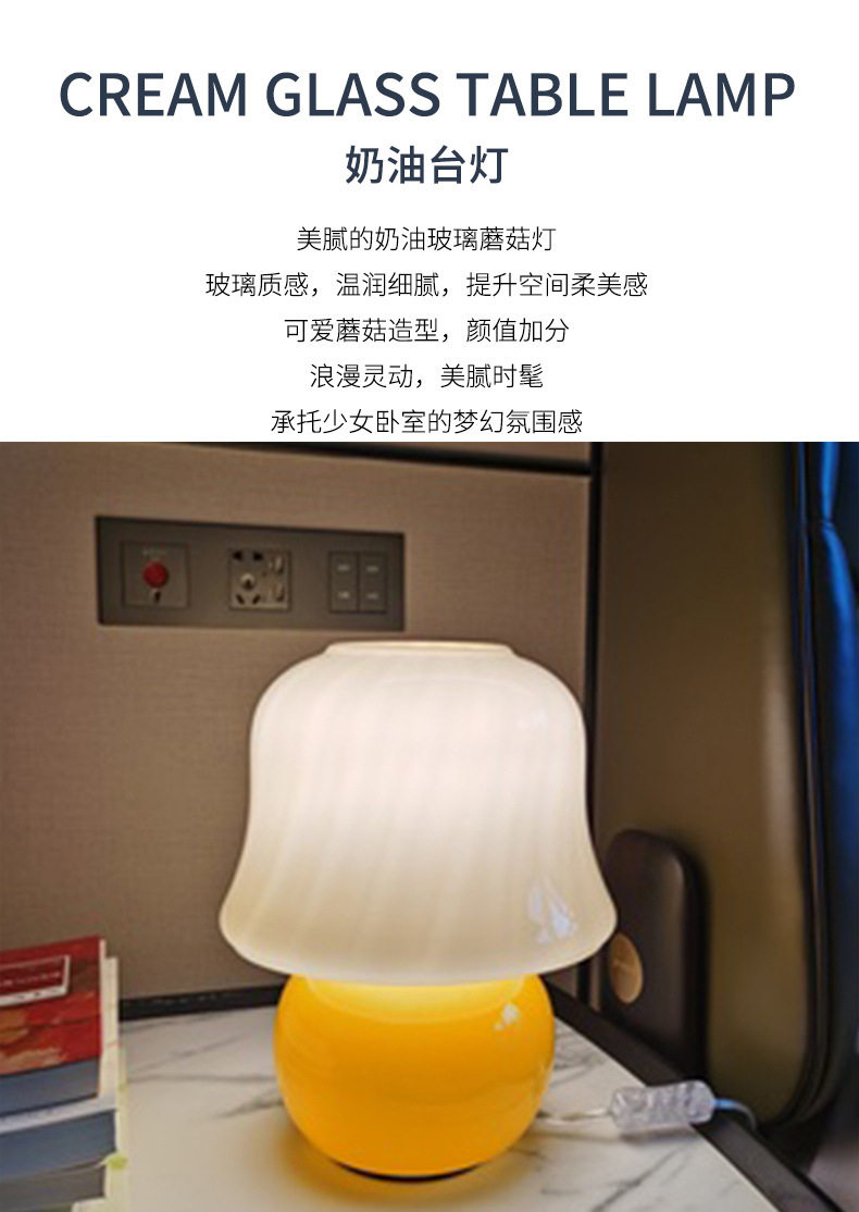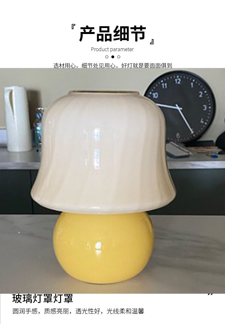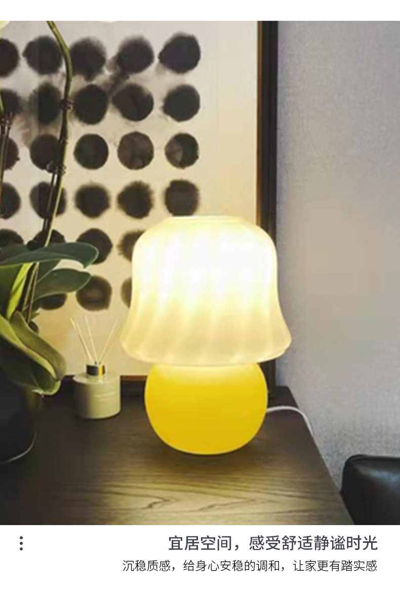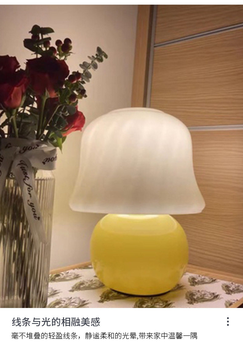 创意琉璃小少女台灯台灯奶油蘑菇网红中古卧室床头装饰小红书氛围
