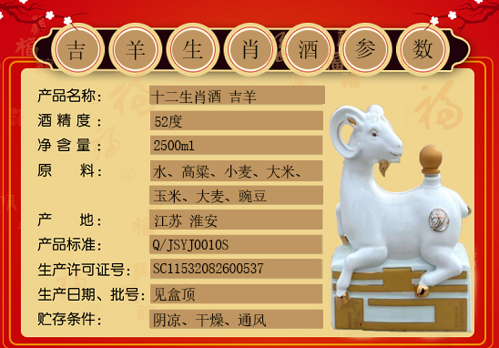 52度2.5L今世缘十二生肖吉羊珍藏纪念酒