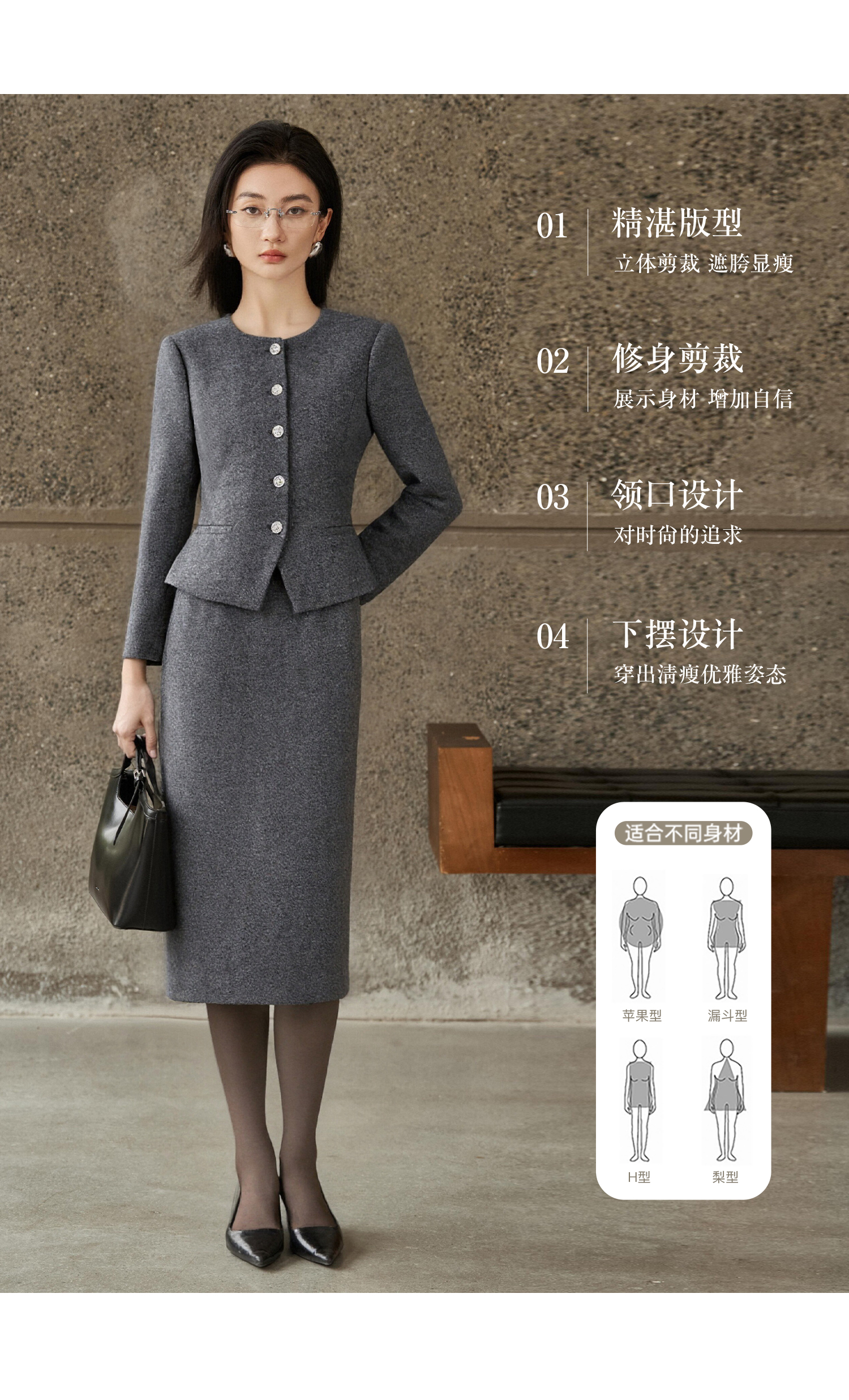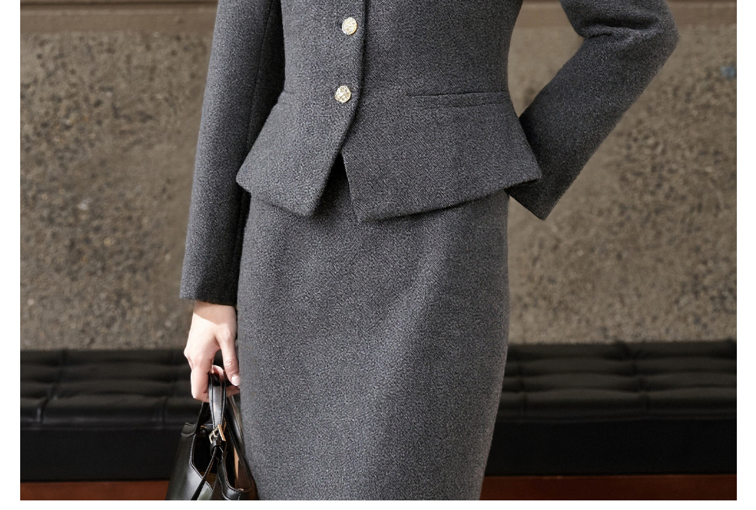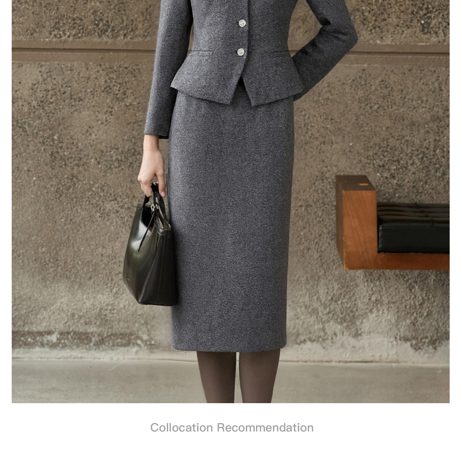 米思阳2025冬新品气质通勤羊毛混纺西装外套+高腰直筒半身裙(单拍)两件套女5564