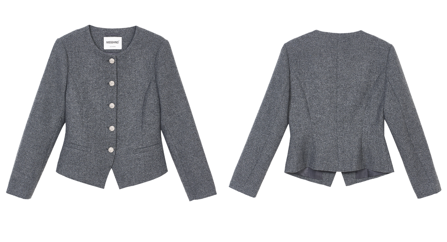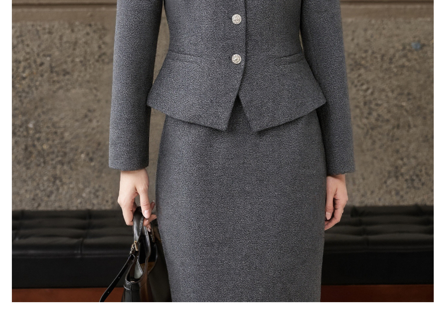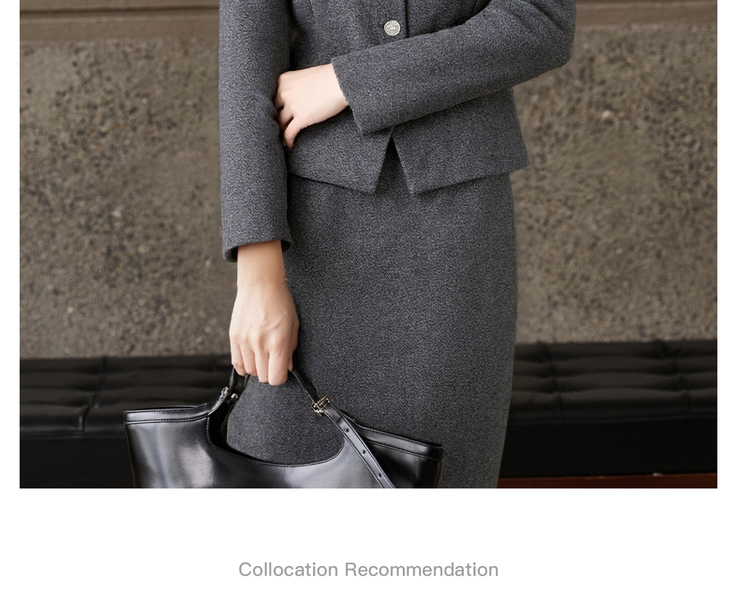 米思阳2025冬新品气质通勤羊毛混纺西装外套+高腰直筒半身裙(单拍)两件套女5564