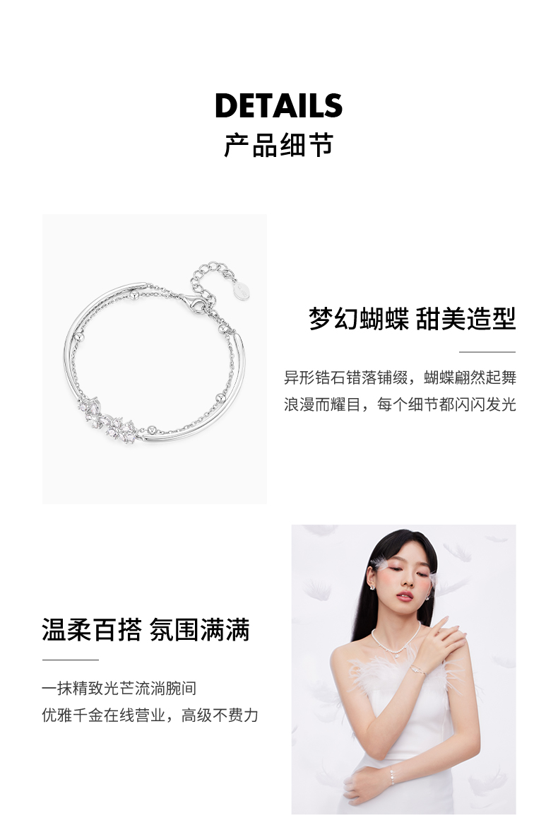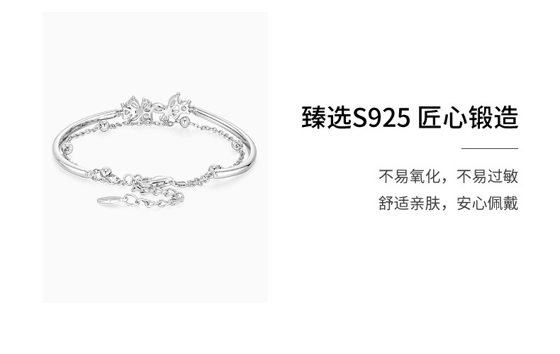 KADER卡蒂罗 闪闪蝶舞镯链 S925银梦幻蝴蝶甜美造型设计配饰 优雅仙气款圣诞配饰闪耀秋冬 闺蜜同款女生款 礼盒