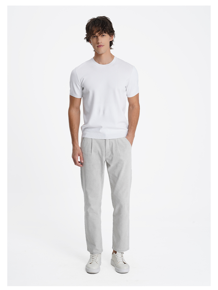 callisto松弛系列老钱风糯米白绵羊毛混纺西裤