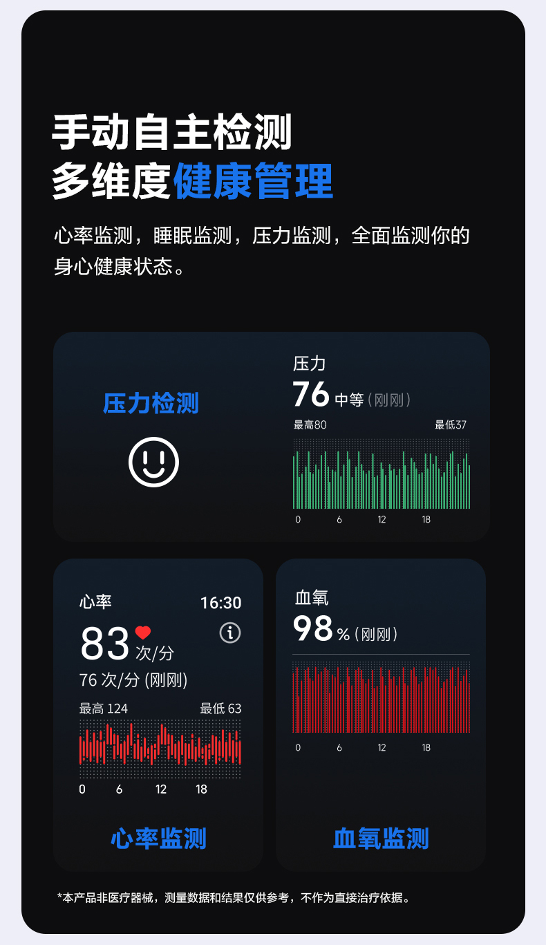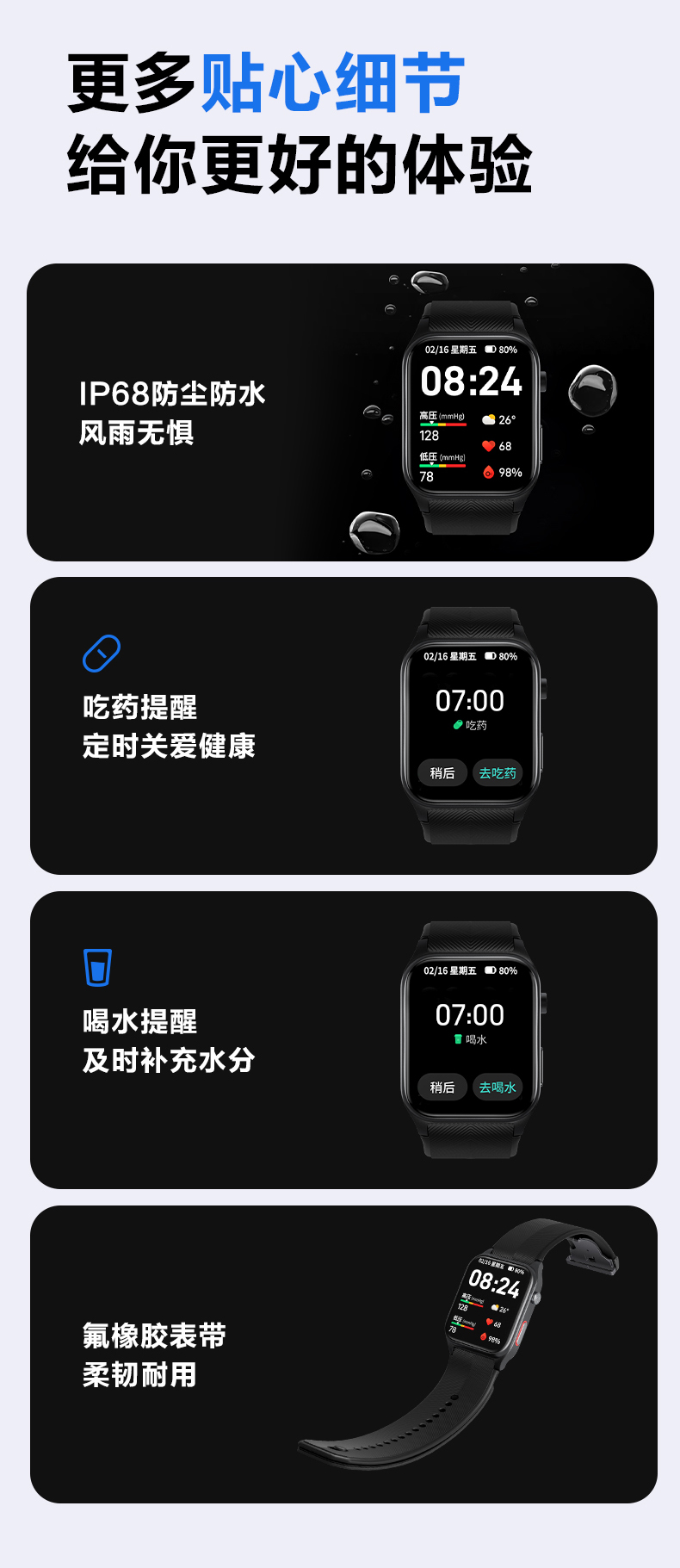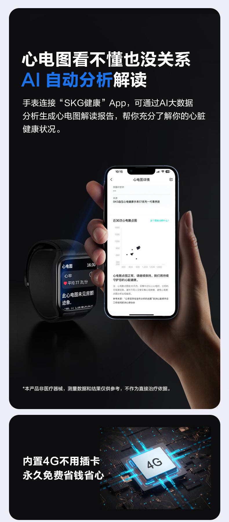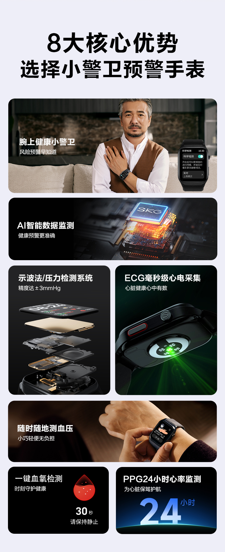 SKG健康监测手表S7尊贵款预警运动跑步测量仪血氧心率睡眠高精度免采血智能检测血压手表老人礼物