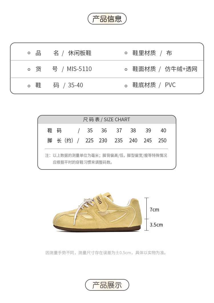 【YW】无忧购韩版复古芭蕾风魔术贴透气网面德训鞋MIS-5110(截单后7天发货)