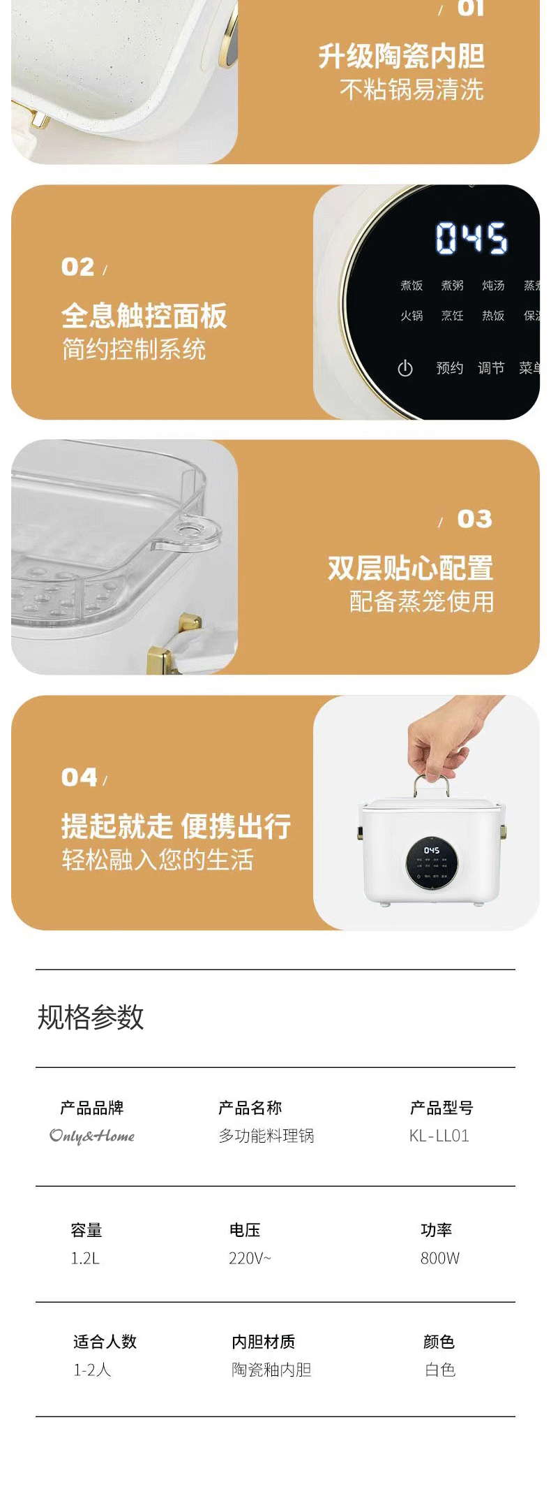 Only&Home 多功能料理锅 KL-LLG01(带蒸屉)