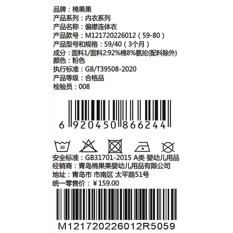 | 衣长 | 45.5 | 52 | 58.5 | 65 |