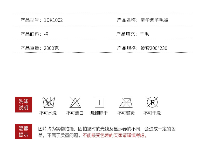 恒源祥豪华澳羊毛被1DK1002