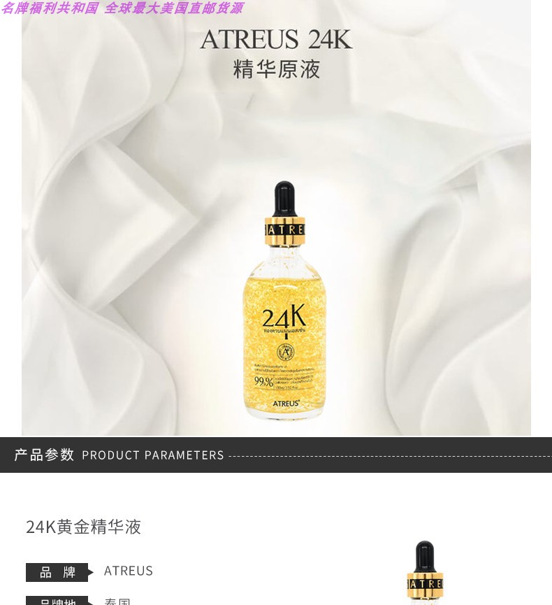 直邮 ATREUS 补水保湿收缩毛孔24K黄金精华液 100MLJPY带授权招加盟代理