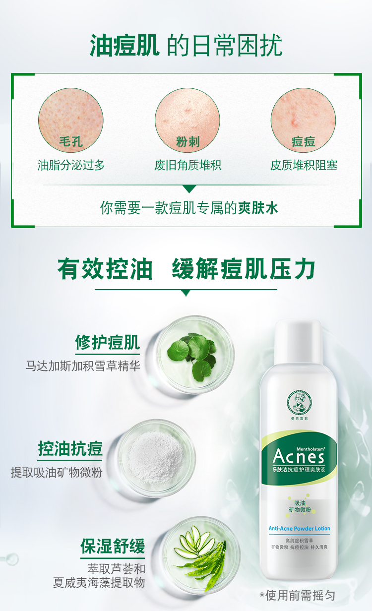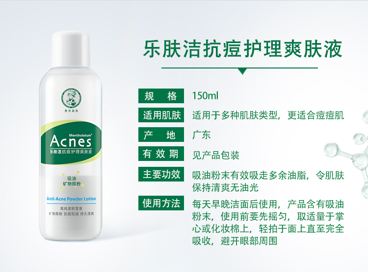 请拍:水+乳液:乐肤洁抗痘护理爽肤液150ml+乐肤洁清爽控油乳液45g