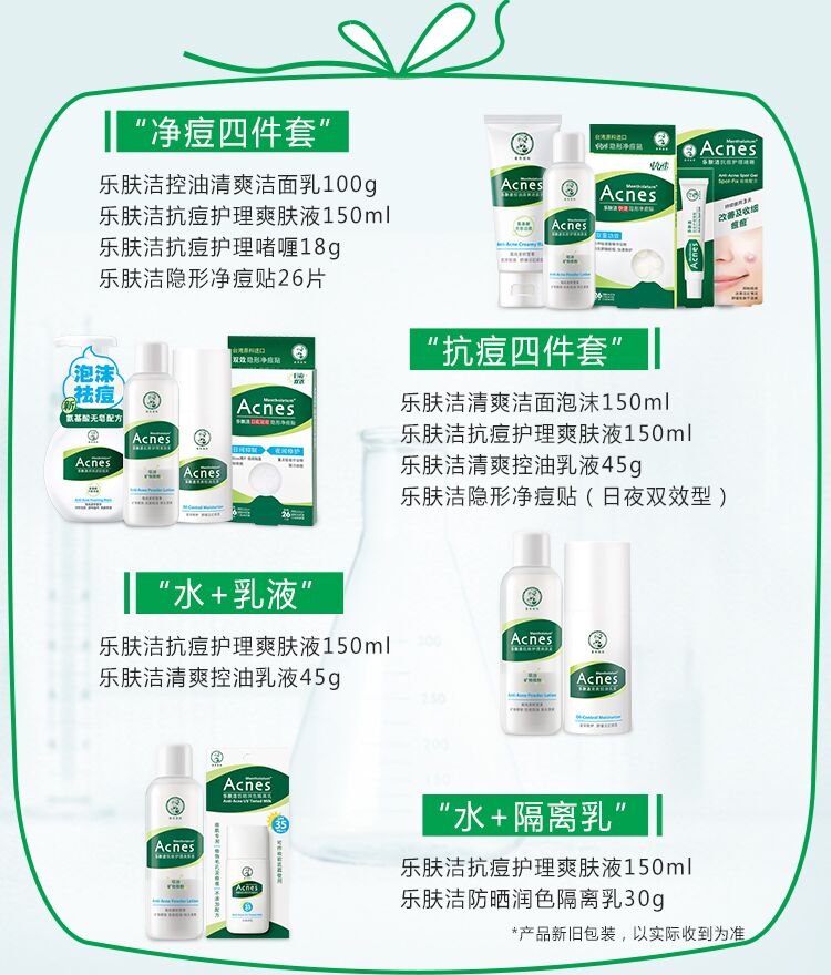 请拍:抗痘四件套:乐肤洁清爽洁面泡沫150ml+乐肤洁抗痘护理爽肤液150ml+乐肤洁清爽控油乳液45g+乐肤洁隐形净痘贴(日夜双效型)