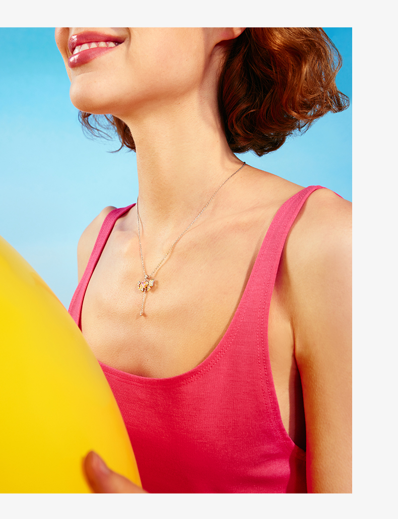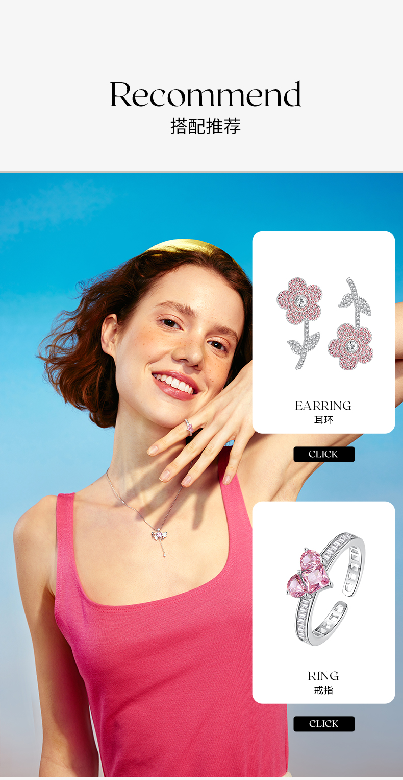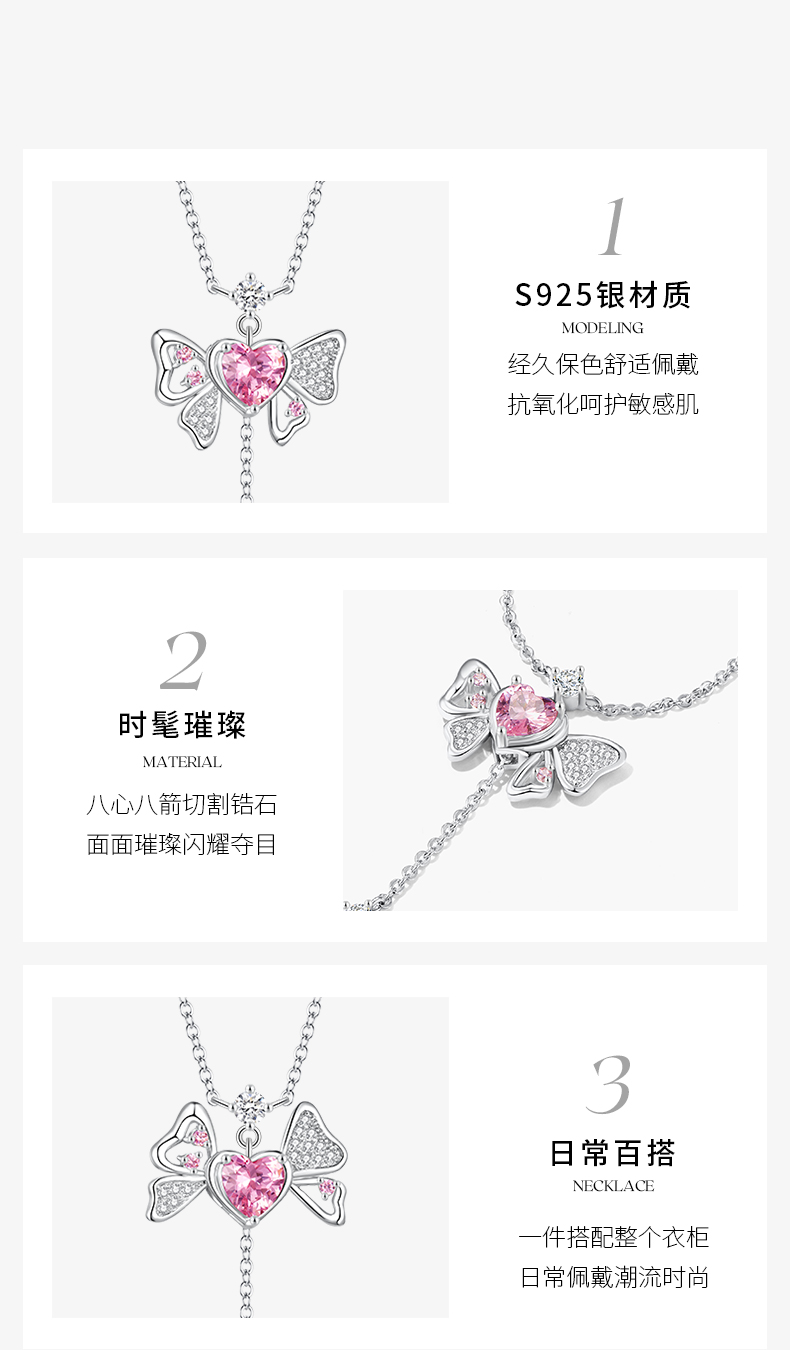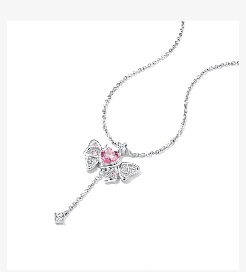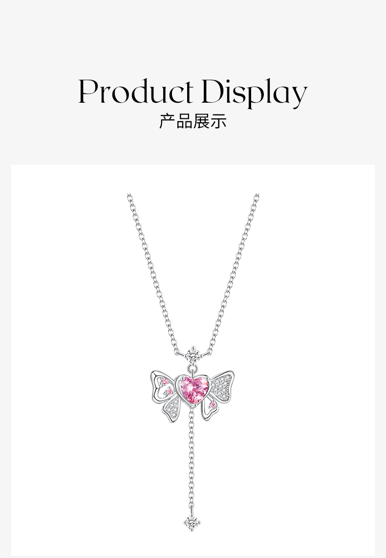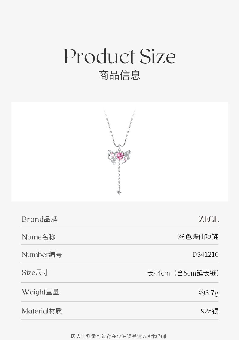 ZEGL设计师925银蝴蝶流苏项链女款小众粉色锁骨链七夕送女友礼物