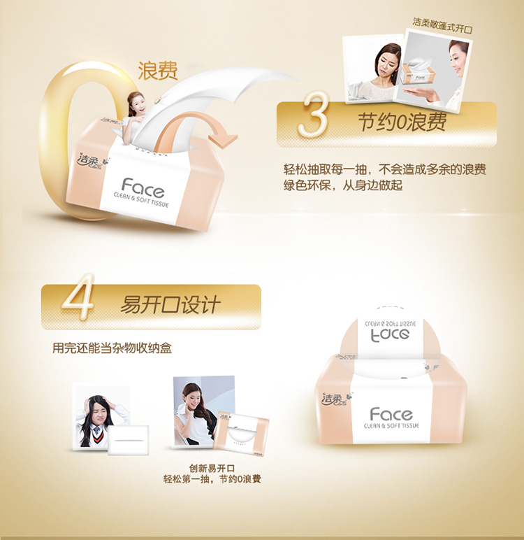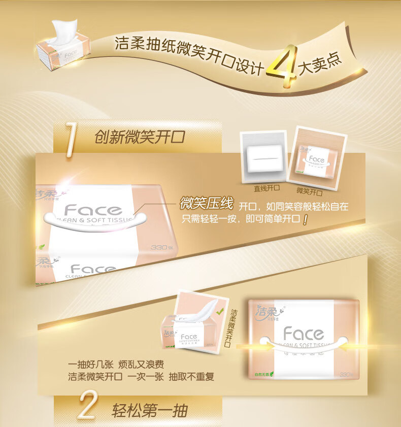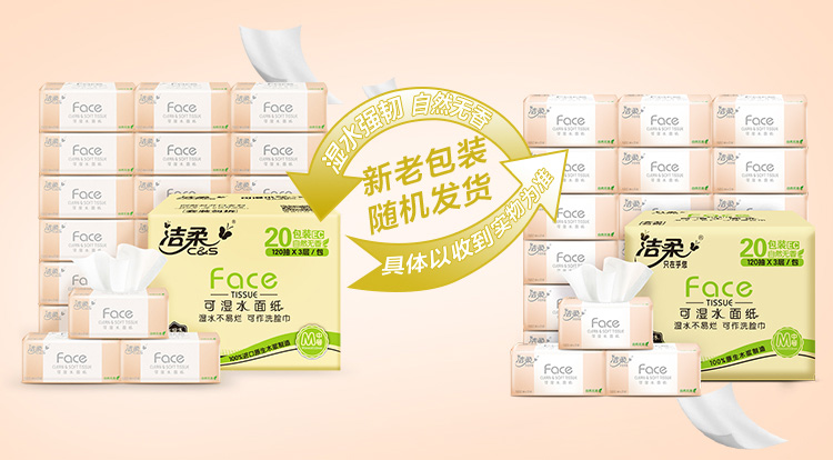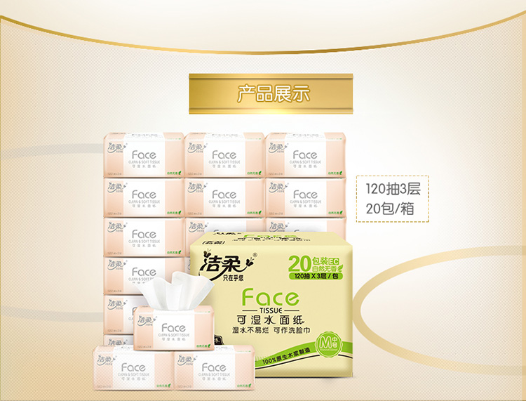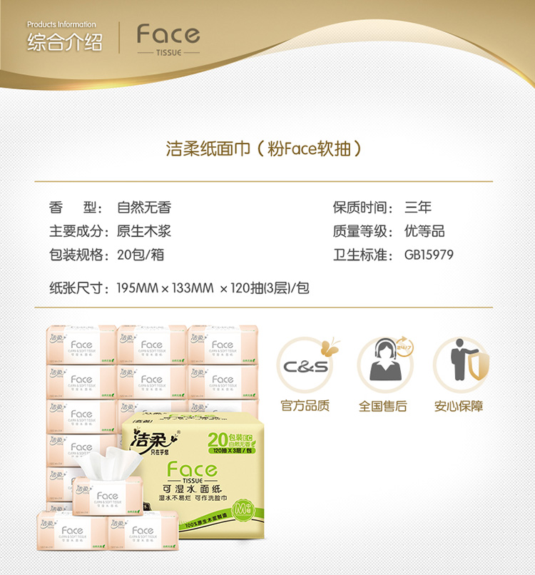 洁柔(C&S)抽纸 粉Face 柔韧3层120抽面巾纸*20包 无香(M号纸巾 面子系列可湿水 婴儿纸)整箱销售