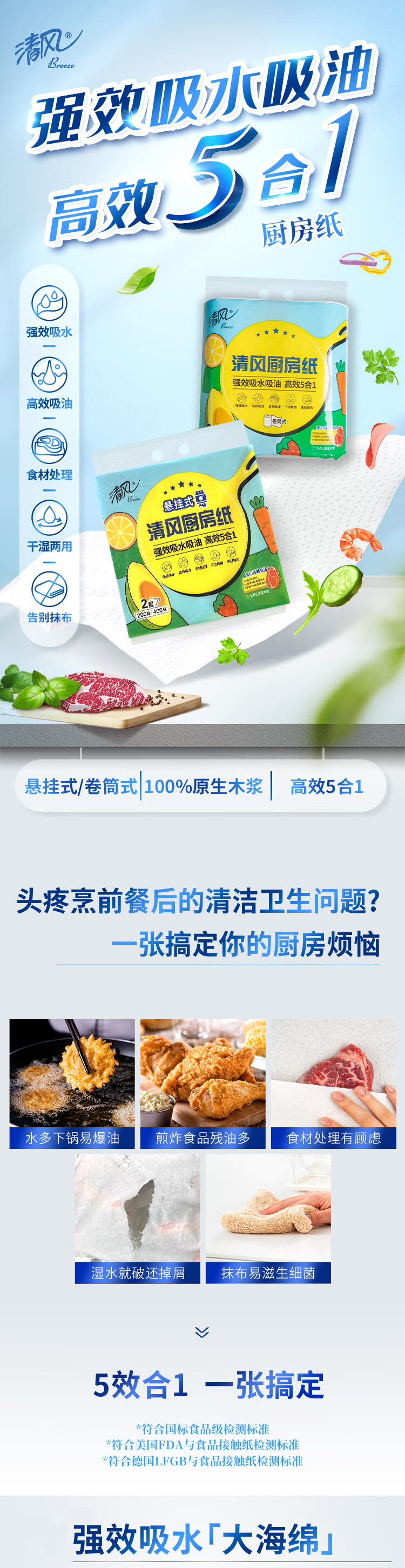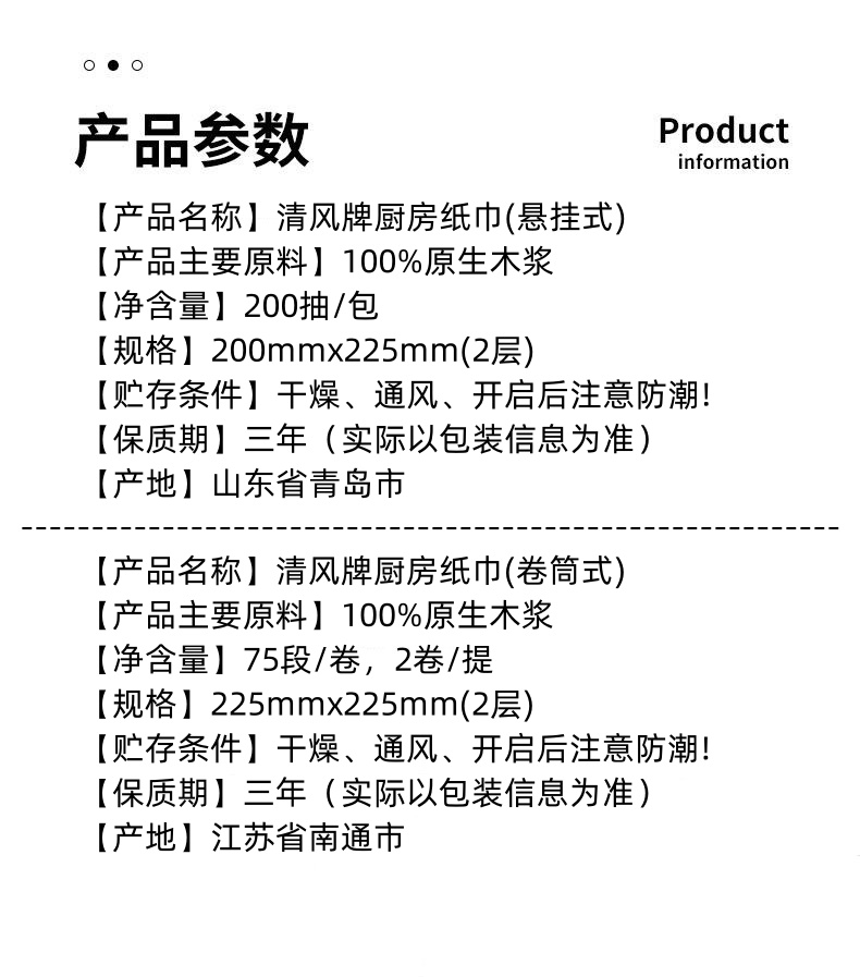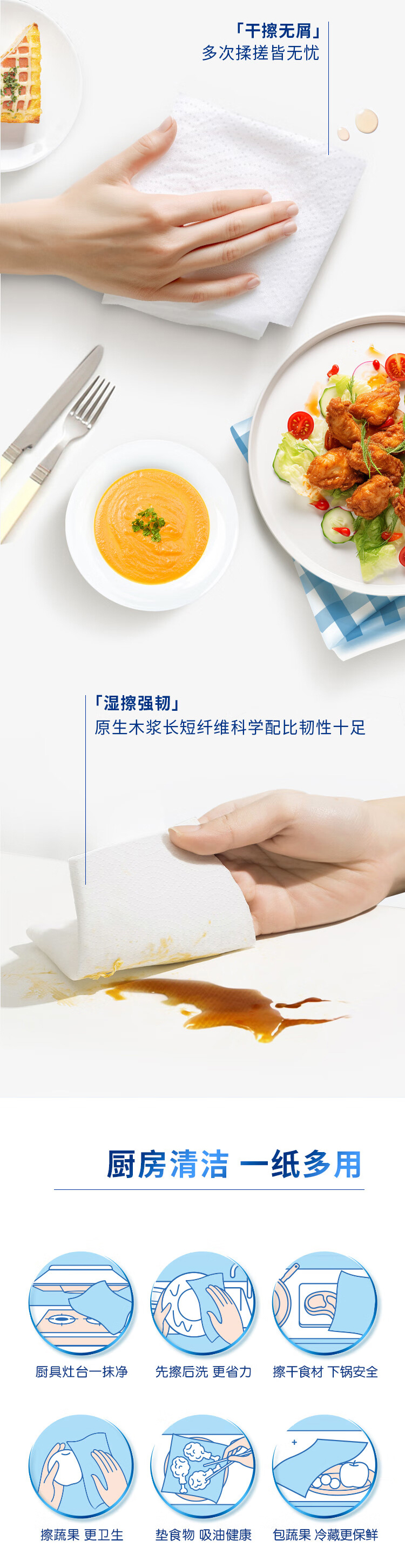 清风牌厨房纸巾卷筒式75段*2卷丨悬挂式 200抽【原生木浆】