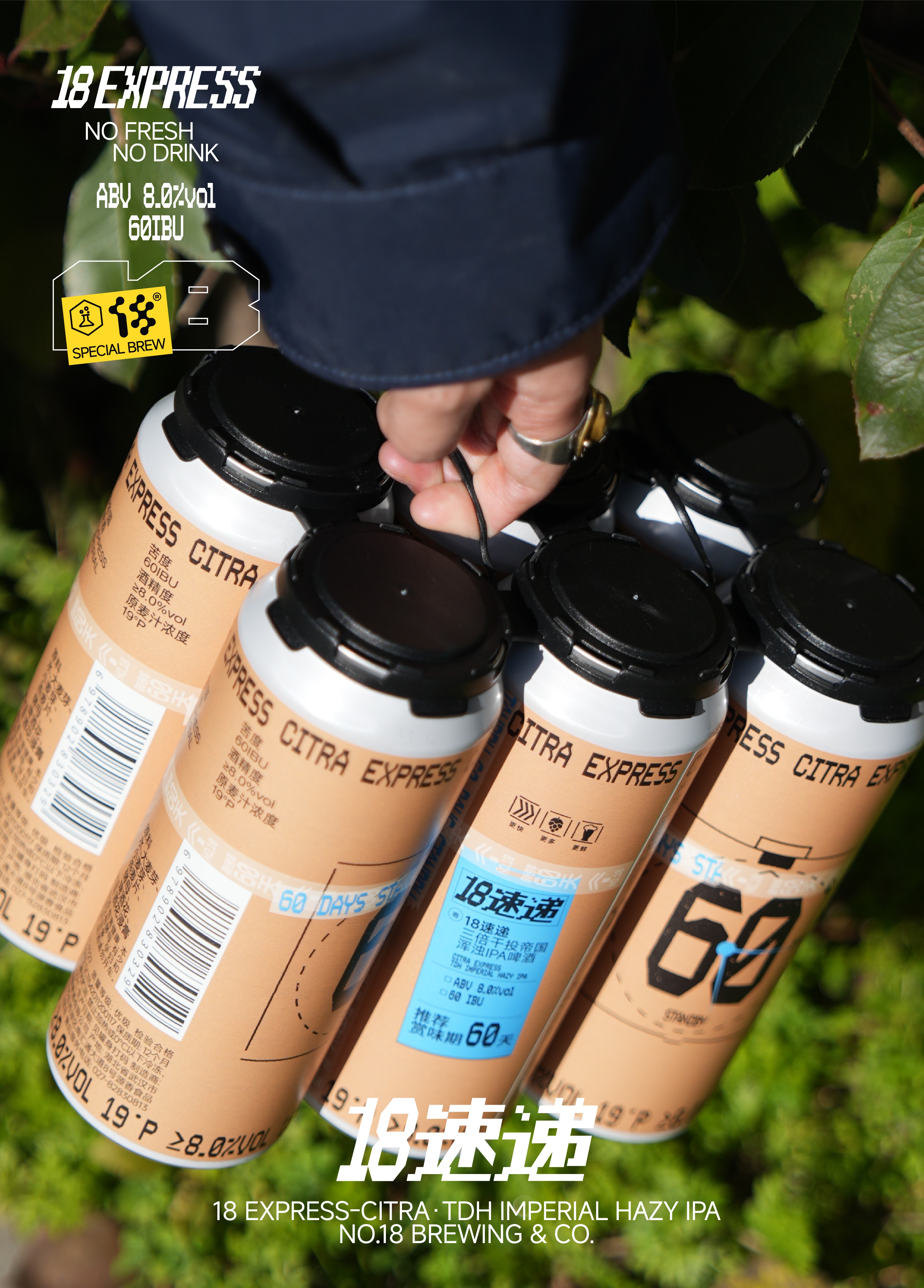 拾捌精酿 18号酒馆 18速递 三倍干投帝国浑浊IPA CITRA EXPRESS TDH IMPERIAL HAZY IPA 国产精酿啤酒 500ml