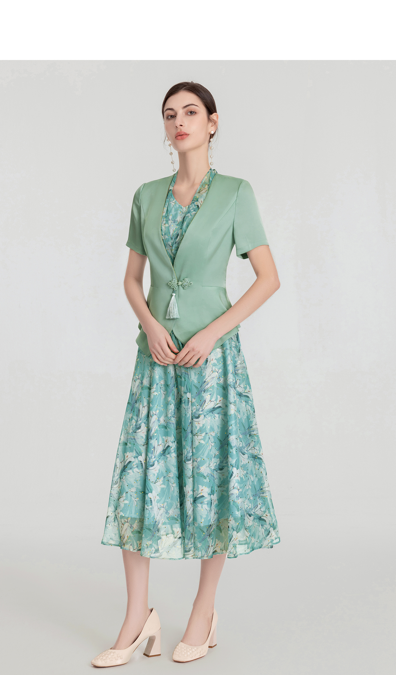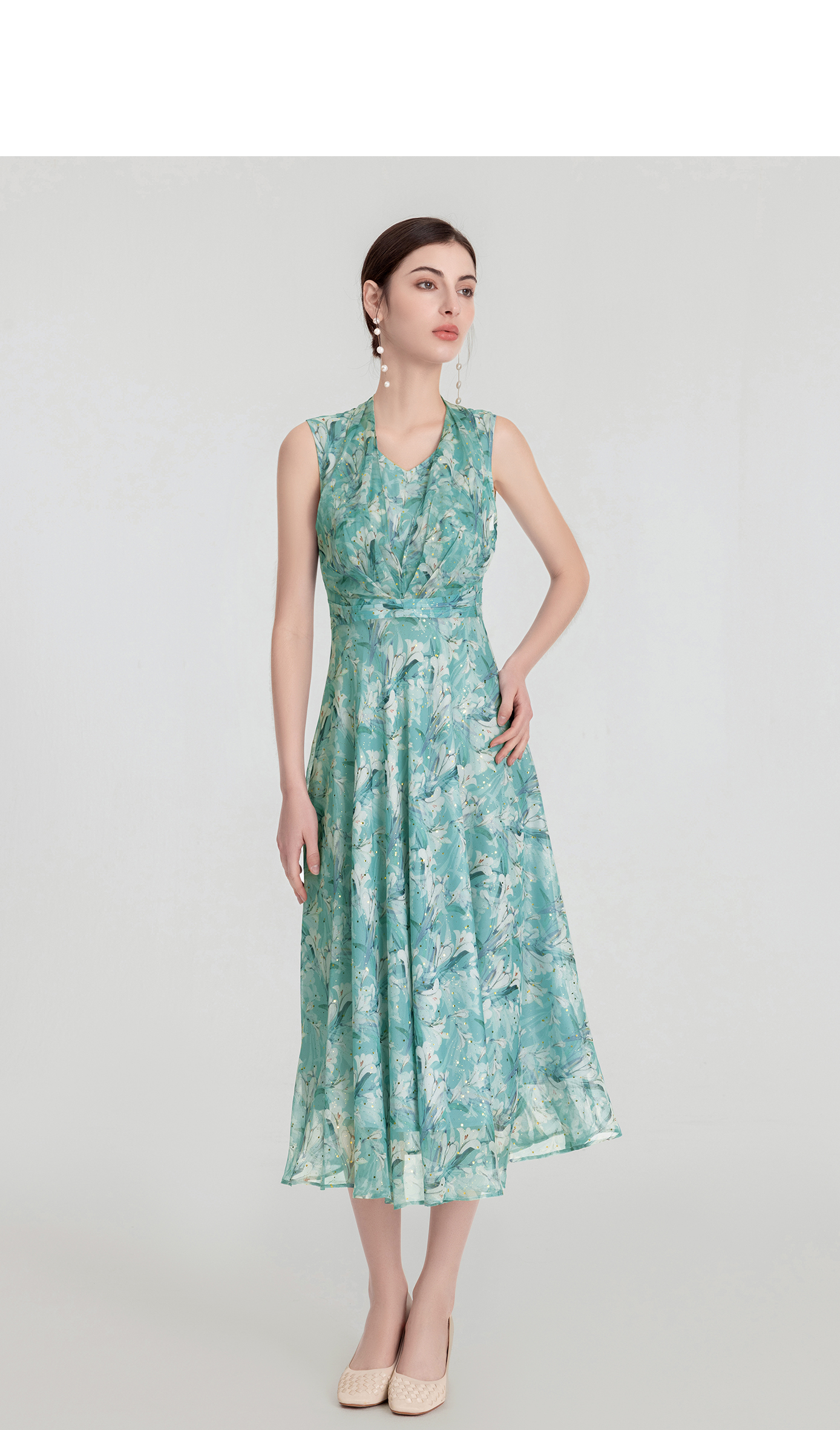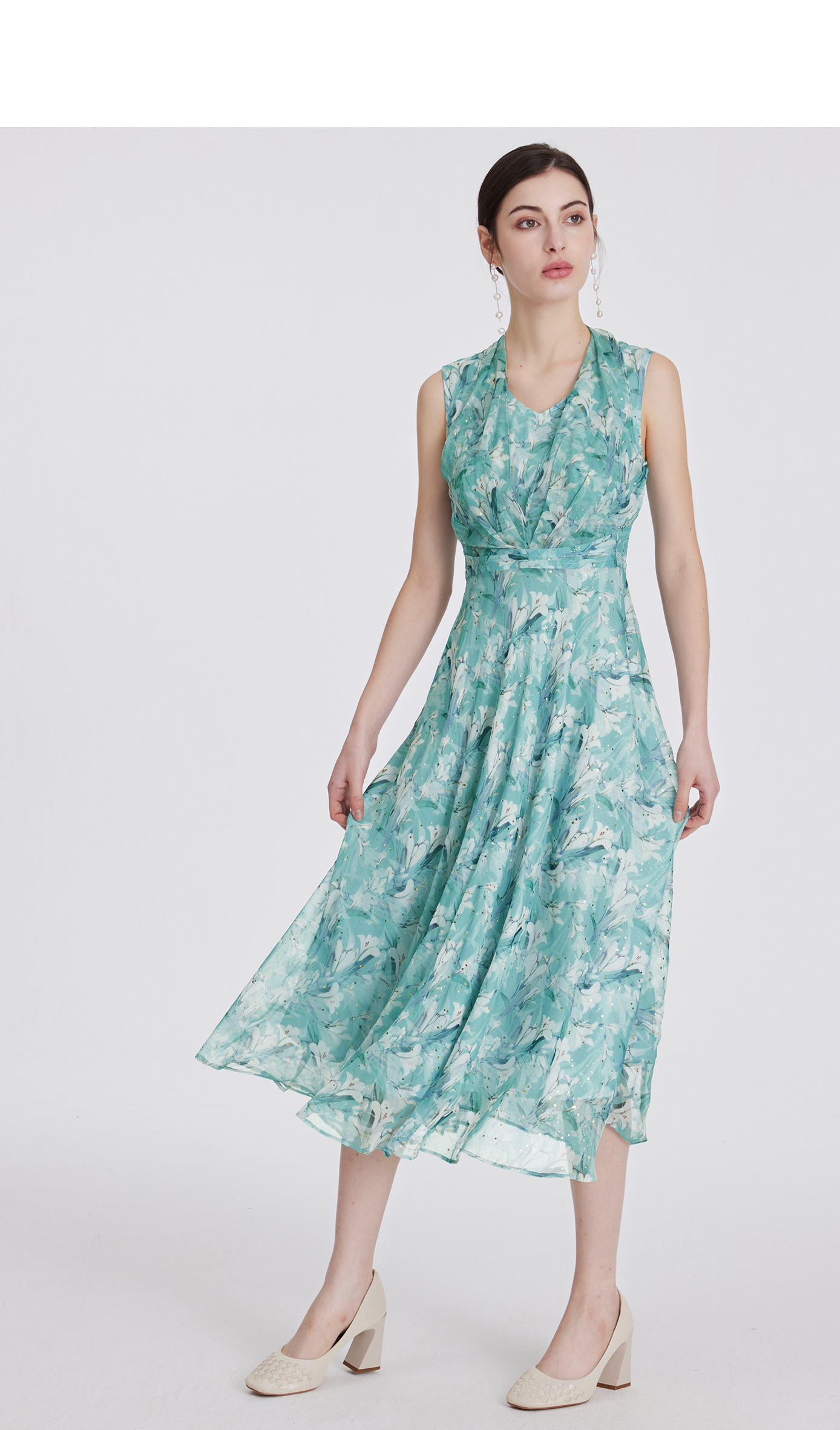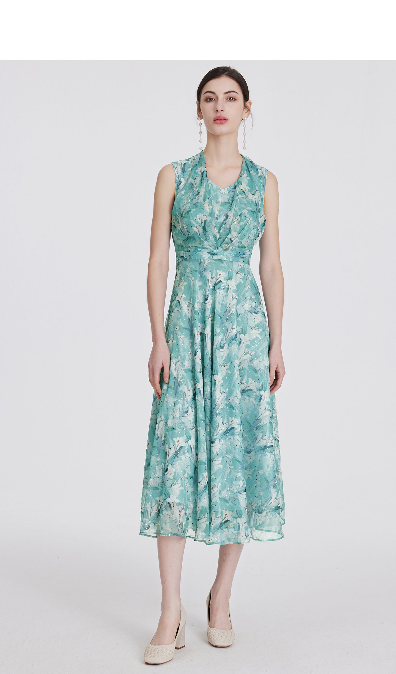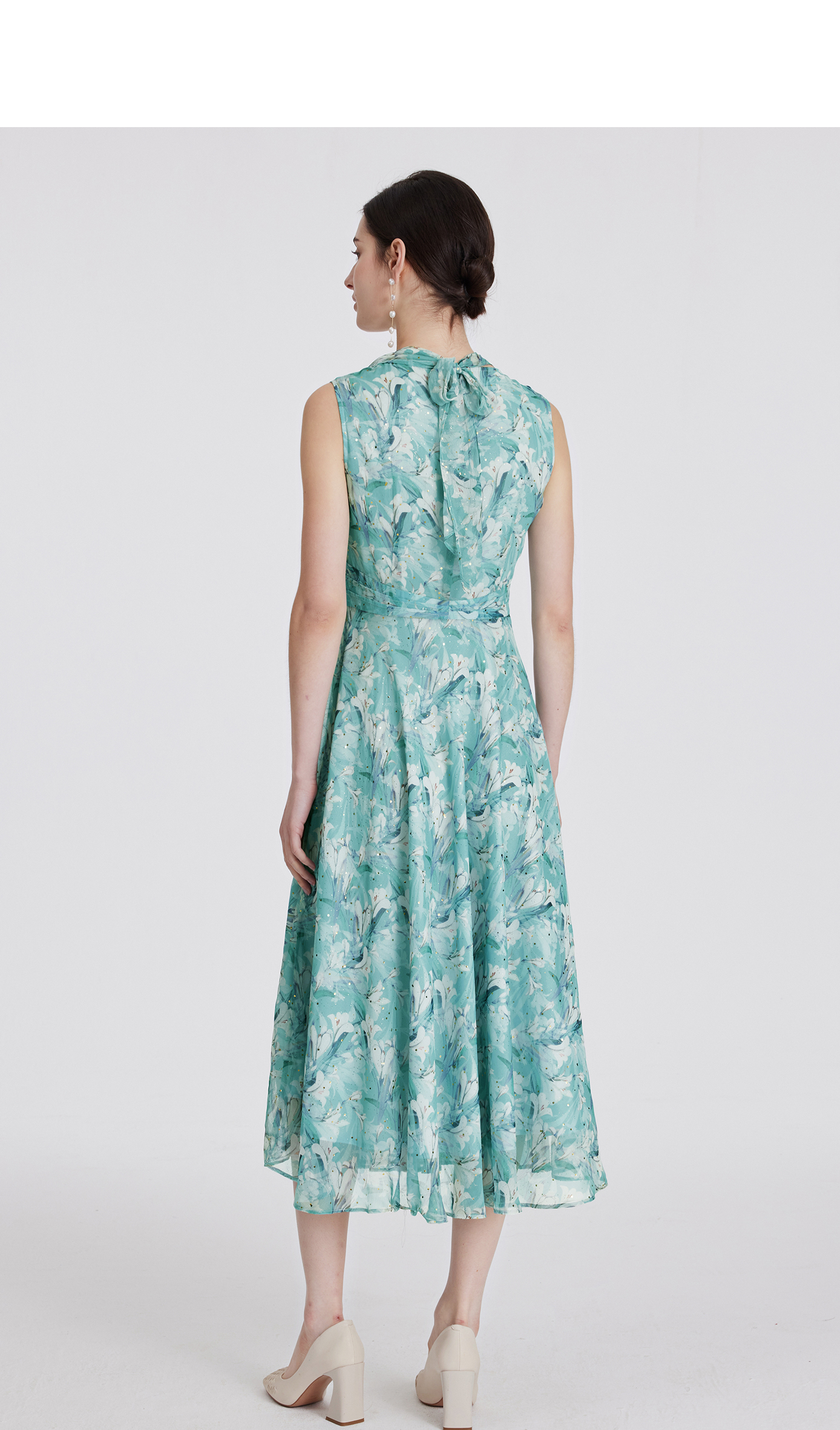 司歌背心绑带显瘦雪纺印花连衣裙A891065X