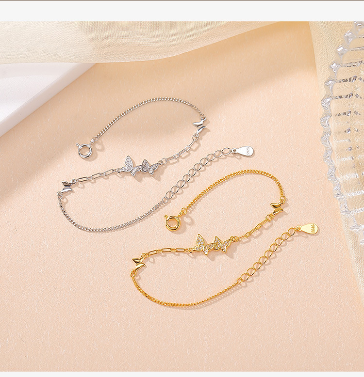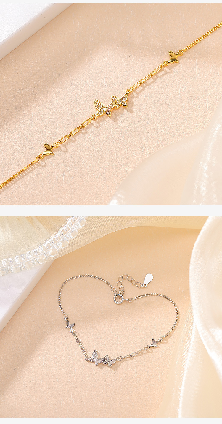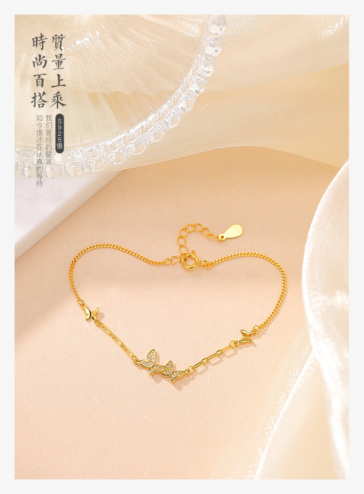 【福蝶翩翩】S925纯银镀金蝴蝶手链【CW-SL11941】