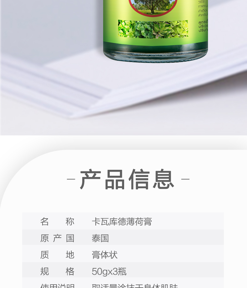 【泰国卡瓦青草膏50g*3瓶】驱蚊止痒 提醒醒脑
