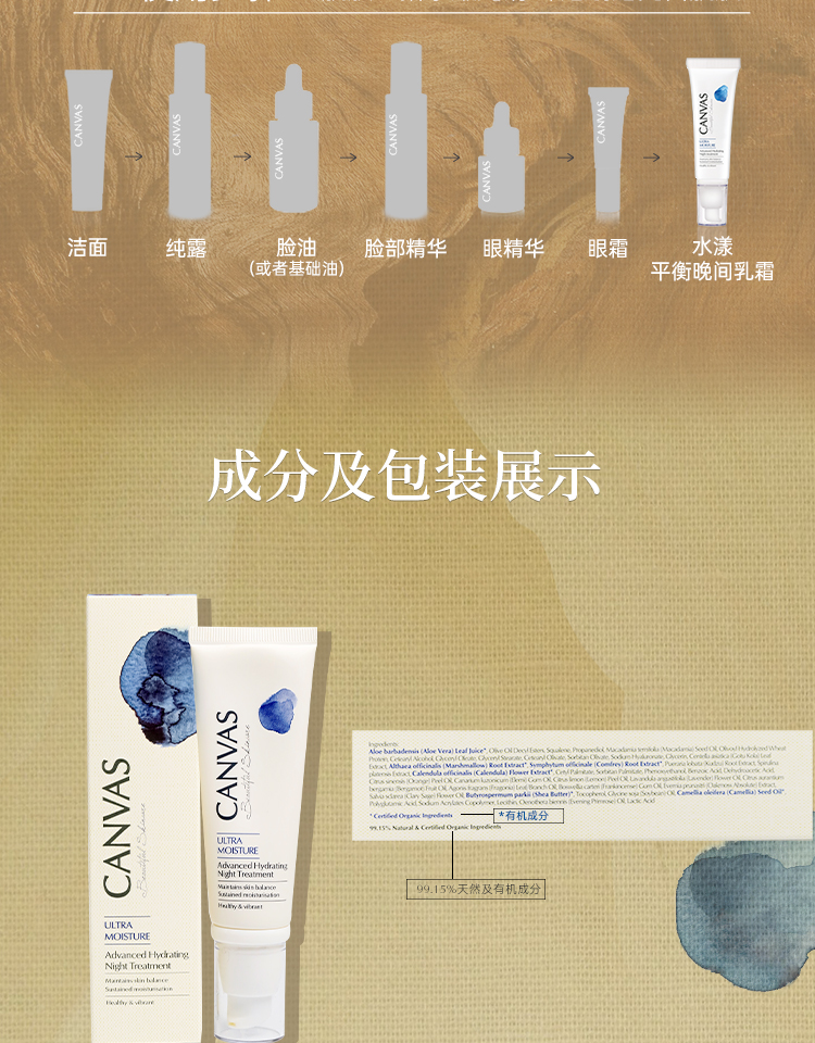 保税直发 CANVAS 卡芬诗 水漾平衡抗老套组(日间乳液 40mL+晚间乳霜 40mL+精华液 40mL)