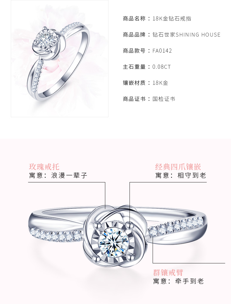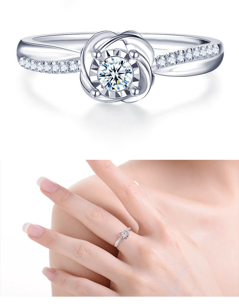 【甄选钻饰】【专享】钻石世家 18K金钻石戒指 显钻钻石戒指简约钻戒 星芒切割镶嵌术 钻石世家专款钻饰(主石约0.08ct、副石0.05ct)