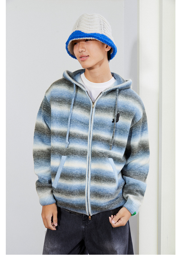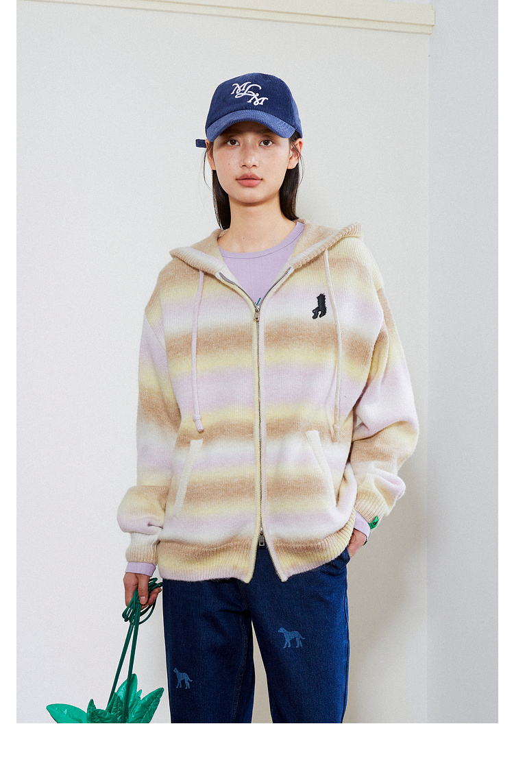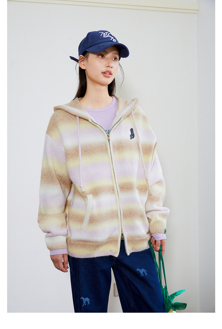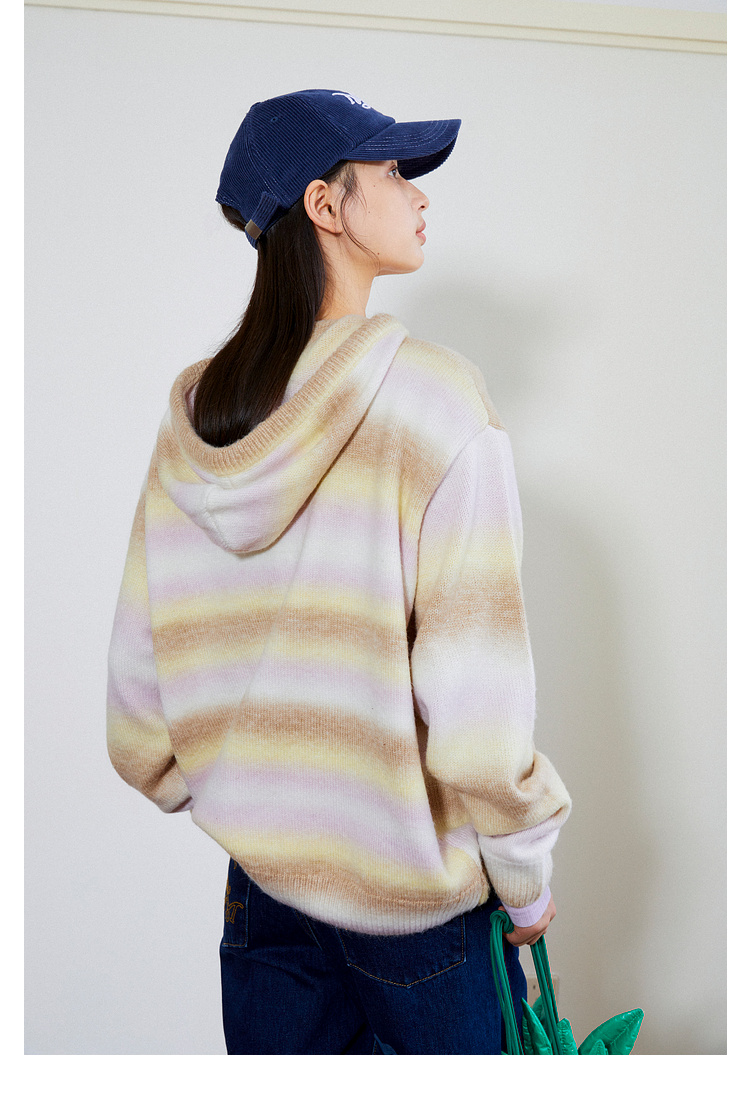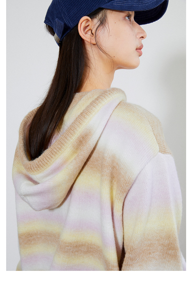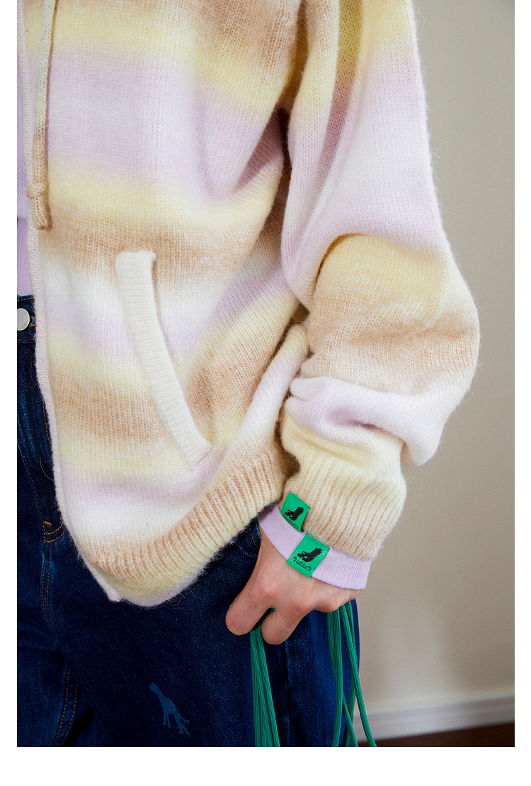Mood Like Me/MMY2408/渐变喷纱连帽开衫针织毛衣