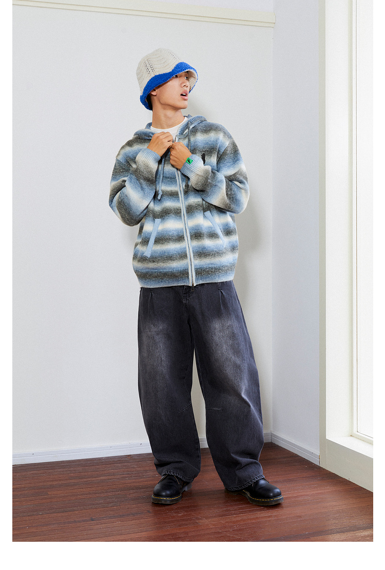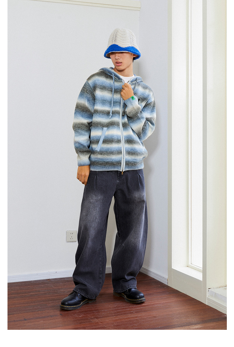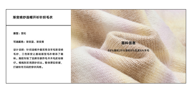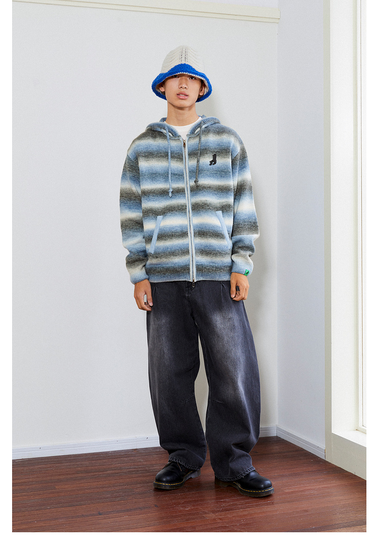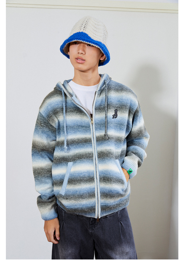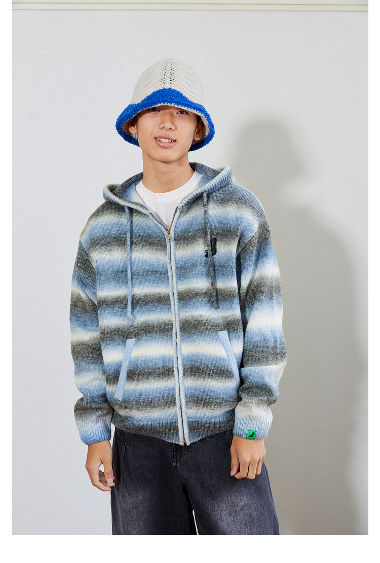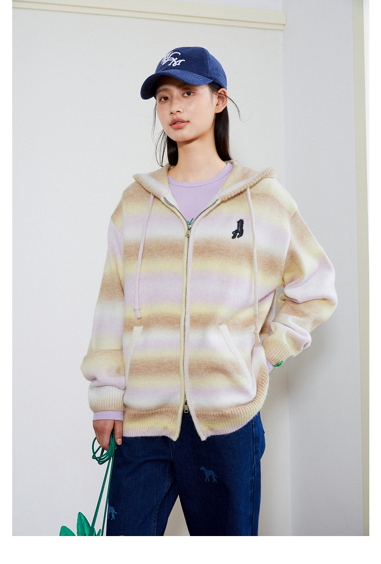 Mood Like Me/MMY2408/渐变喷纱连帽开衫针织毛衣
