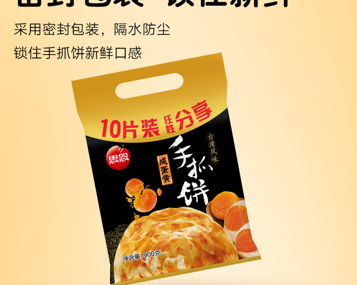 思念 咸蛋黄味手抓饼 900g 10片 早餐卷饼 烘焙 培根火腿伴侣