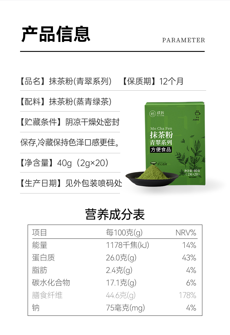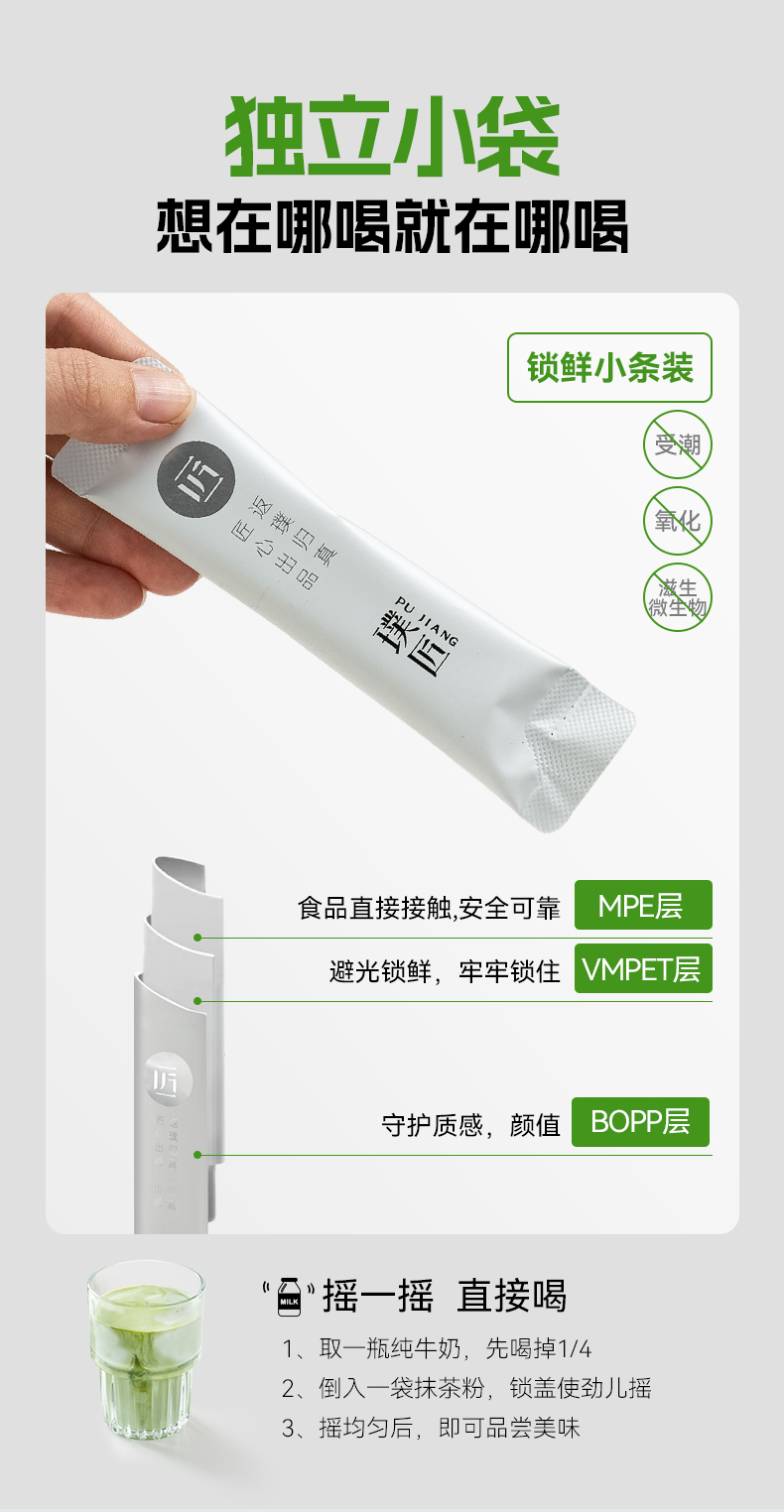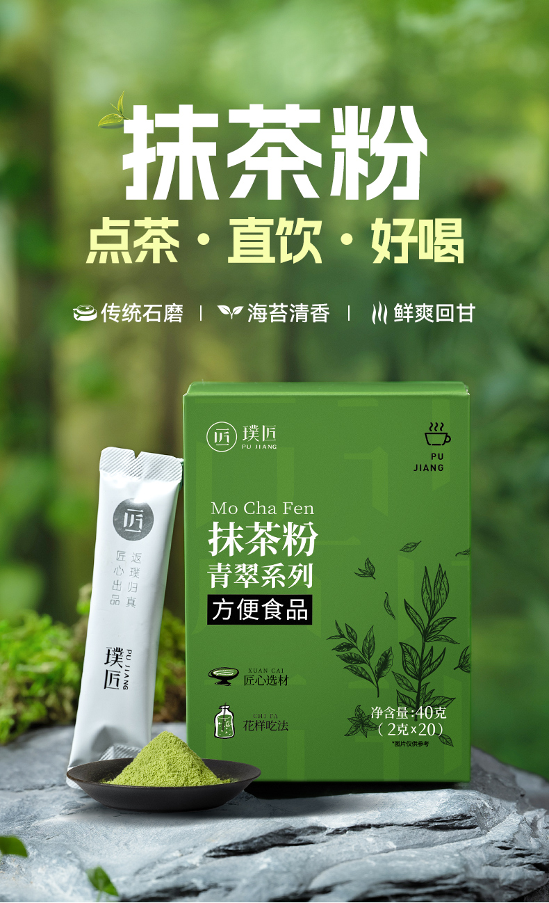 璞匠纯抹茶粉冲饮独立袋装蛋糕烘焙专用奶茶拿铁点茶薄茶直饮饮品